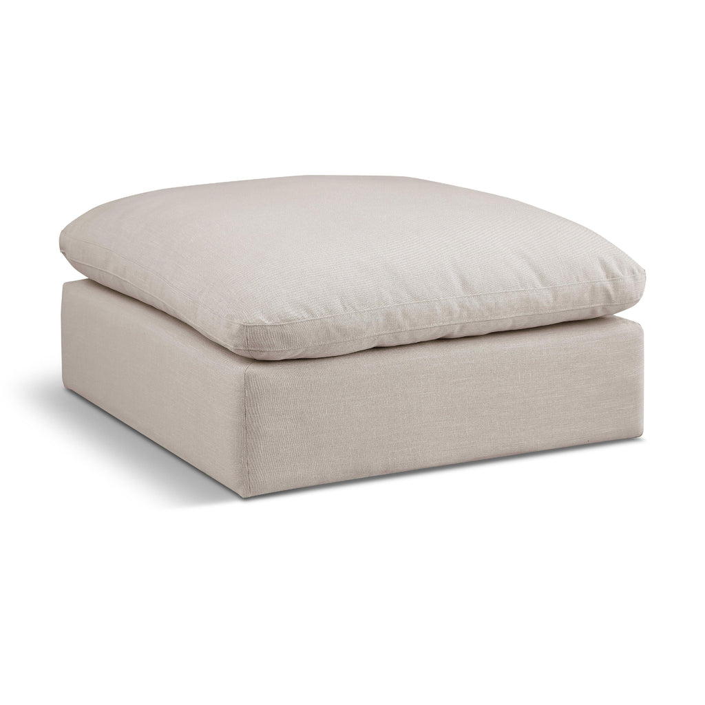 Give your space a whole new look with this beige Comfy linen textured fabric ottoman. This handsome ottoman fits nicely with other items in the Comfy collection and is a versatile seating option designed for adaptability, comfort and style. Wrapped in rich beige durable linen textured fabric upholstery, this ottoman offers a plush embrace of overstuffed down feather cushions, carefully crafted to deliver the highest level of comfort. The perfect seat for creating an oasis for relaxation, this ottoman has thick foam surrounding its frame for added support and coziness.