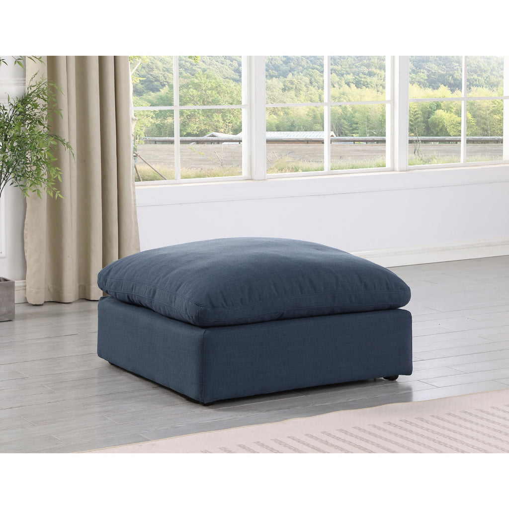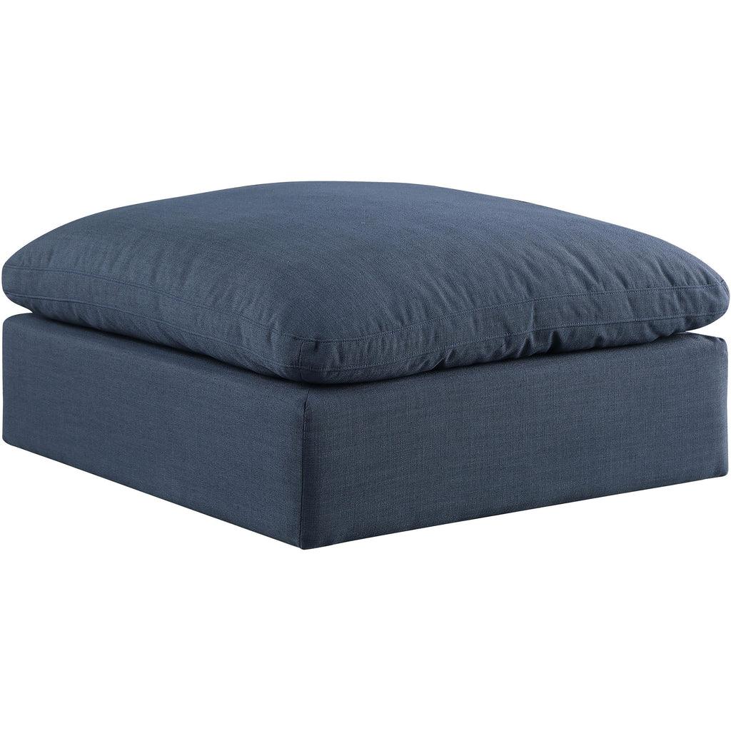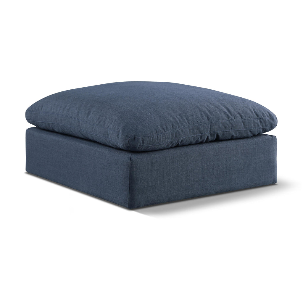 Give your space a whole new look with this navy Comfy linen textured fabric ottoman. This handsome ottoman fits nicely with other items in the Comfy collection and is a versatile seating option designed for adaptability, comfort and style. Wrapped in rich navy durable linen textured fabric upholstery, this ottoman offers a plush embrace of overstuffed down feather cushions, carefully crafted to deliver the highest level of comfort. The perfect seat for creating an oasis for relaxation, this ottoman has thick foam surrounding its frame for added support and coziness.