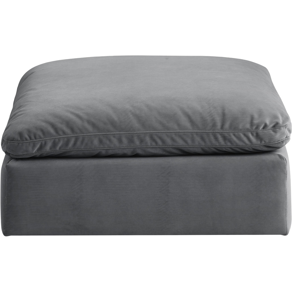 Give your space a whole new look with this grey Comfy velvet ottoman. This handsome ottoman fits nicely with other items in the Comfy collection and is a versatile seating option designed for adaptability, comfort and style. Wrapped in rich grey durable velvet upholstery, this ottoman offers a plush embrace of overstuffed down feather cushions, carefully crafted to deliver the highest level of comfort. The perfect seat for creating an oasis for relaxation, this ottoman has thick foam surrounding its frame for added support and coziness.
