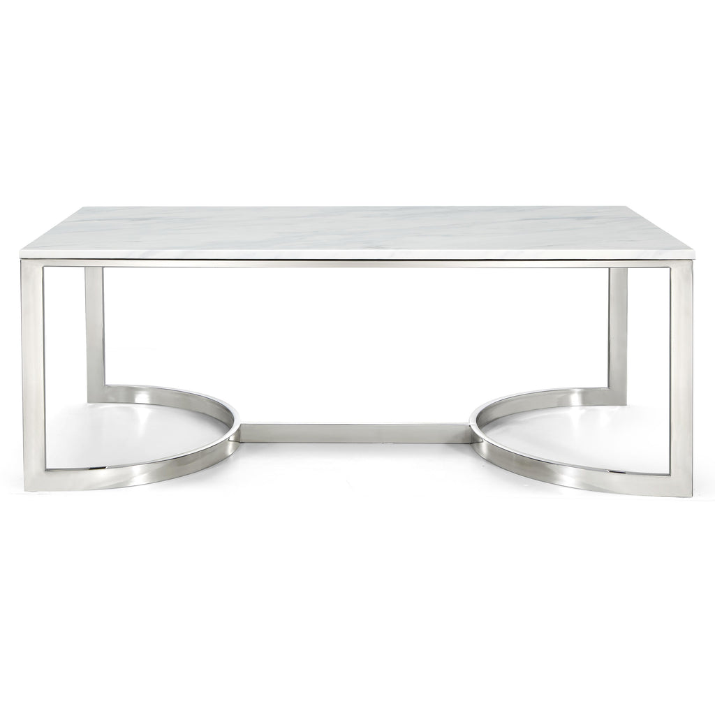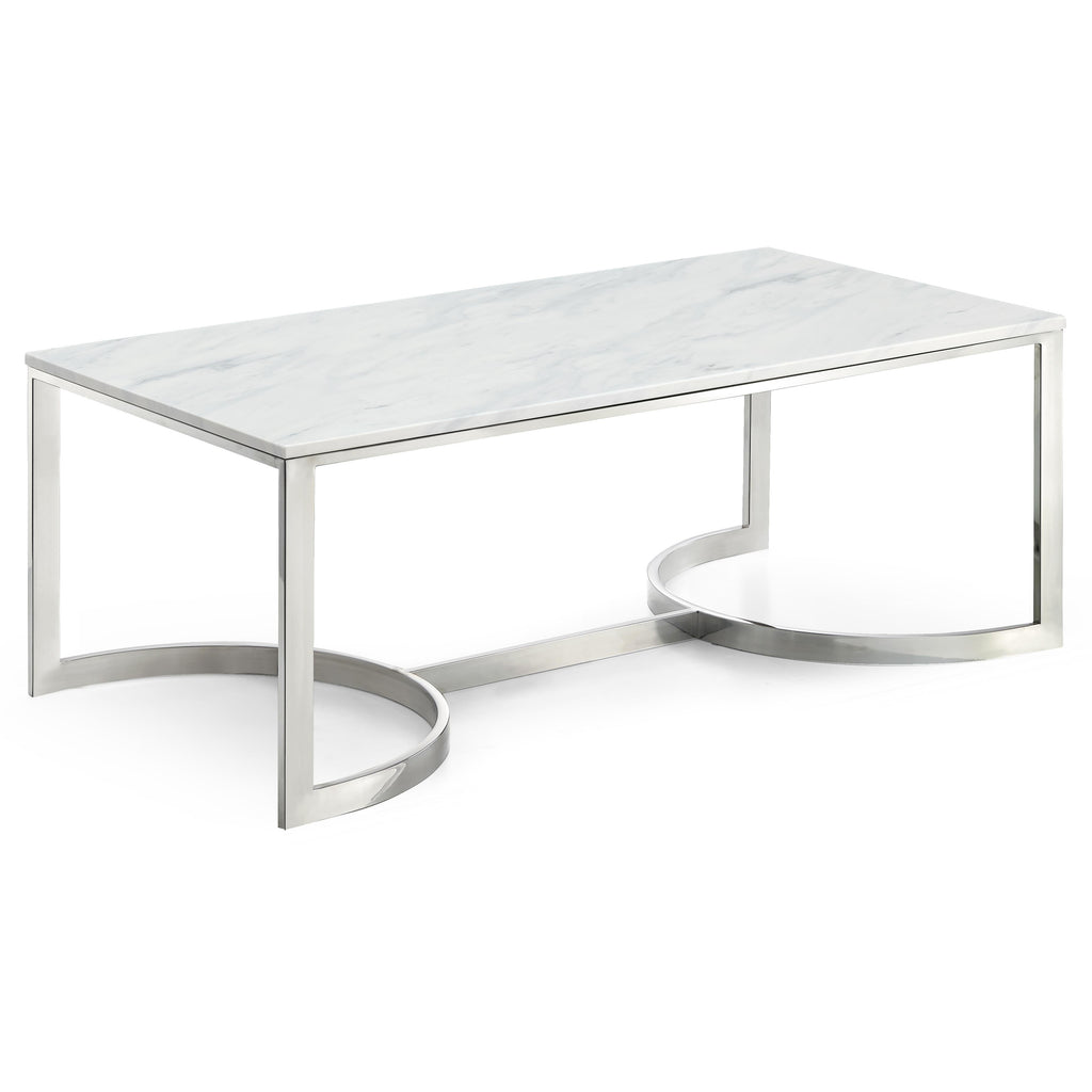 Lend your living room or den a modern slant with the Copley coffee table from Meridian Furniture. This coffee table features geometric bases, and a sleek chrome finish that gives your space a bold, up-to-the-minute look. Each table has a solid stone top for durability and style.