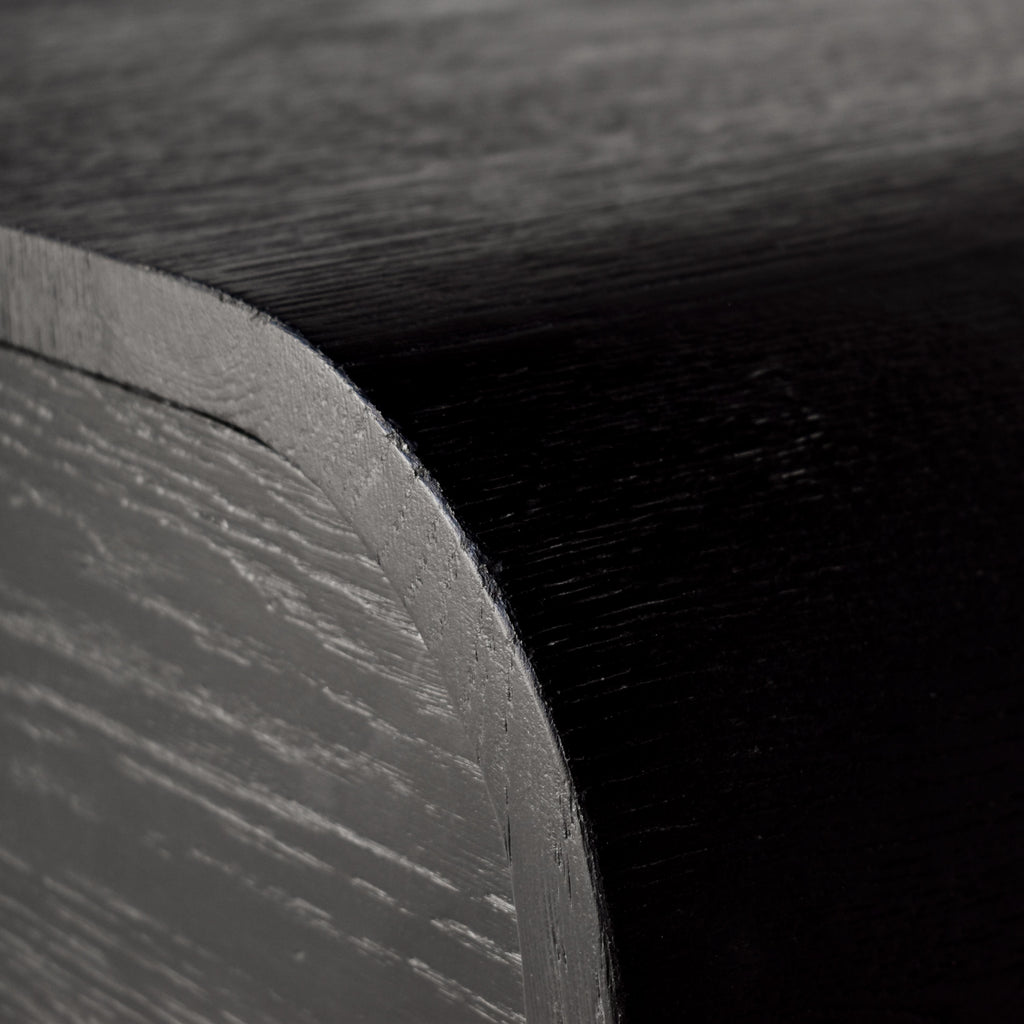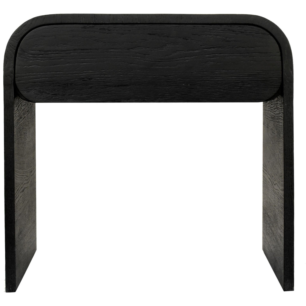 Bring midcentury design elements to life in your bedroom space with this Cresthill nightstand. This lovely piece grabs attention immediately with its stark black brushed oak finish and its minimalist lines with their curved slant. This nightstand is made from solid black oak wood for amazing durability and long-lasting service life. A single drawer keeps everything you need handy and within easy reach beside your bed.