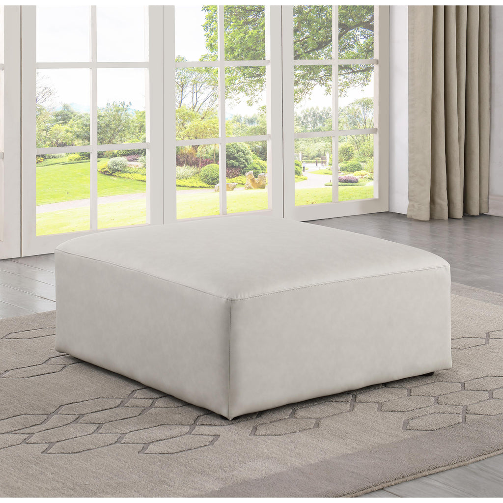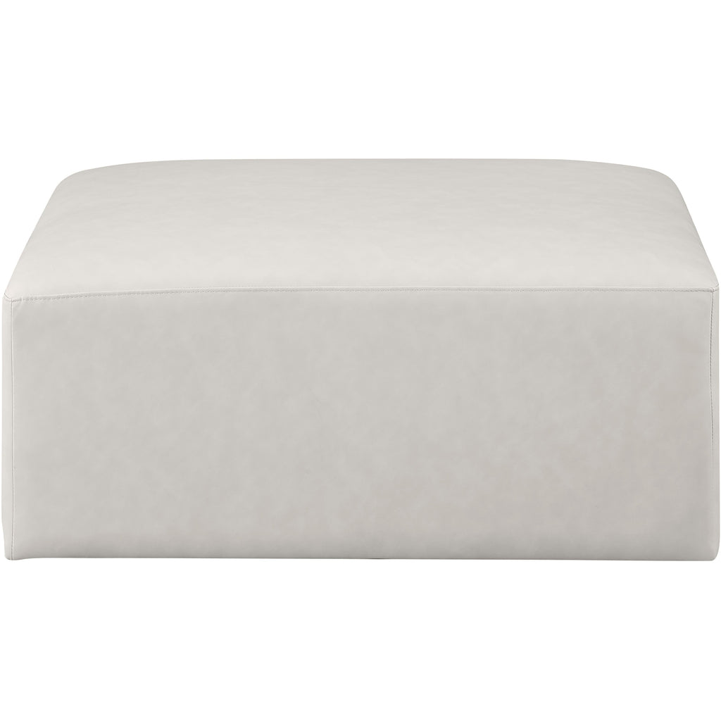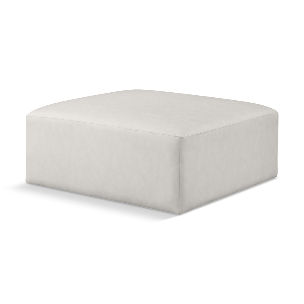 Elevate your space with the luxurious Cube Vegan Leather Ottoman. This ottoman exudes modern elegance, charm, and comfort making it a perfect addition to any contemporary living space. Its clean lines and cube shape are reminiscent of minimalist design, while the plush cream vegan leather upholstery adds a touch of luxury and sophistication. The chair's versatile construction and geometric aesthetic seamlessly integrate into various design styles, from sleek living rooms to chic home offices, embodying the essence of modern design and creating a sense of order and tranquility in your space.