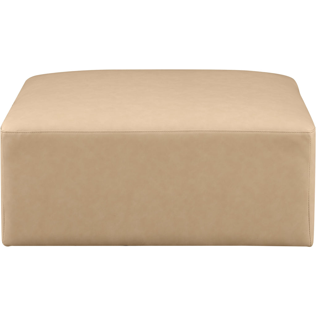 Elevate your space with the luxurious Cube Vegan Leather Ottoman. This ottoman exudes modern elegance, charm, and comfort making it a perfect addition to any contemporary living space. Its clean lines and cube shape are reminiscent of minimalist design, while the plush tan vegan leather upholstery adds a touch of luxury and sophistication. The chair's versatile construction and geometric aesthetic seamlessly integrate into various design styles, from sleek living rooms to chic home offices, embodying the essence of modern design and creating a sense of order and tranquility in your space.