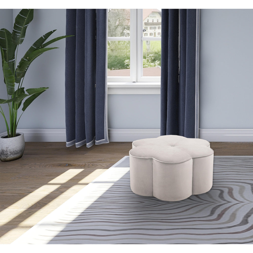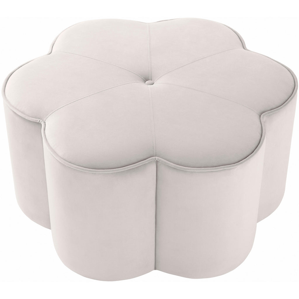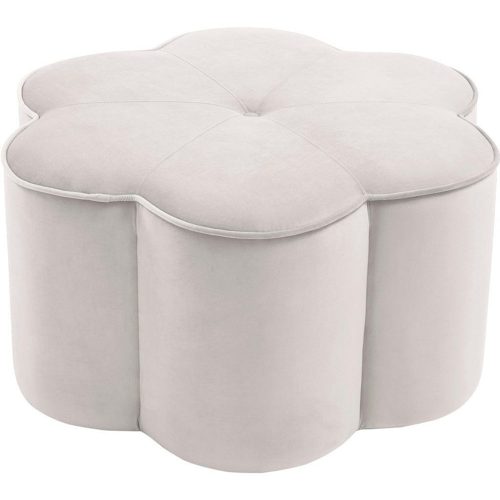 Bring a whimsical touch to your space with this fun Daisy velvet ottoman. Beautifully soft cream velvet upholstery covers the exterior of this ottoman, lending it a plush and luxurious look and a velvety feel. The contemporary design is just right for modern decor themes, whether you use it in the living room or bedroom. Piping around the top of this fabric ottoman helps reinforce the design for a look that turns heads.