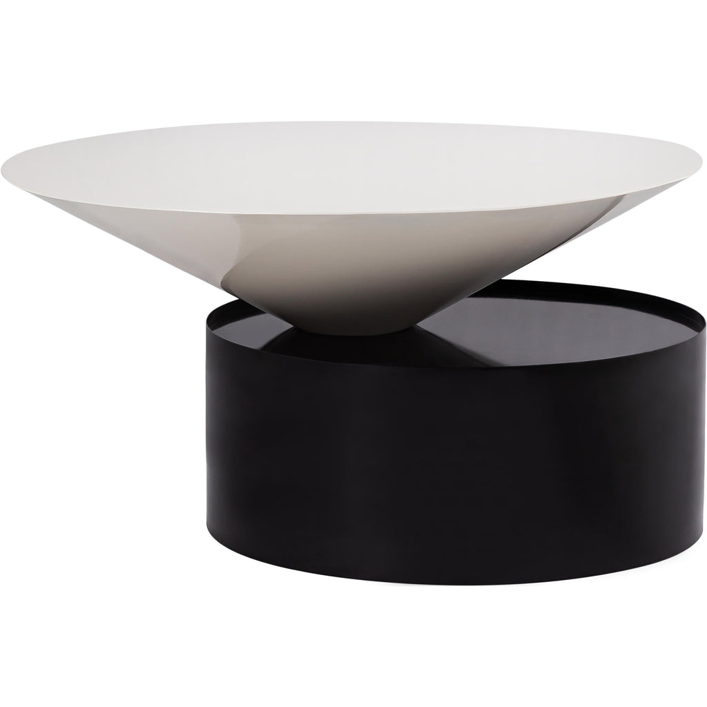 Bring on the sleek! This Damon coffee table features an artful design that's part sculpture, part useful addition to your living room. The white metal top rests on the matte black metal base in a slightly contrasting combination that is bound to wow from all angles. Although it's perfect on its own, this beautiful piece also looks great when paired with the matching Damon end table for added oomph.