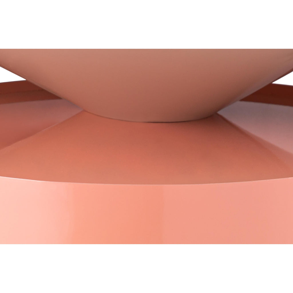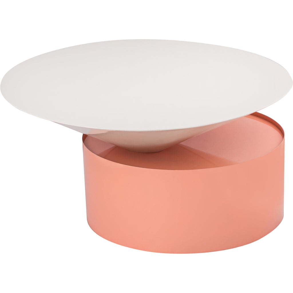 Bring on the sleek! This Damon coffee table features an artful design that's part sculpture, part useful addition to your living room. The white metal top rests on the matte pink metal base in a slightly contrasting combination that is bound to wow from all angles. Although it's perfect on its own, this beautiful piece also looks great when paired with the matching Damon end table for added oomph.