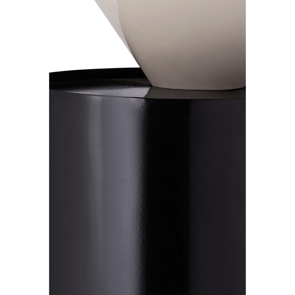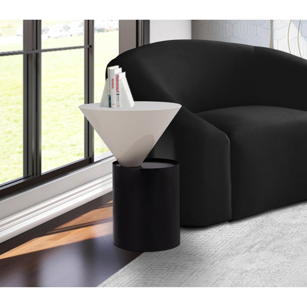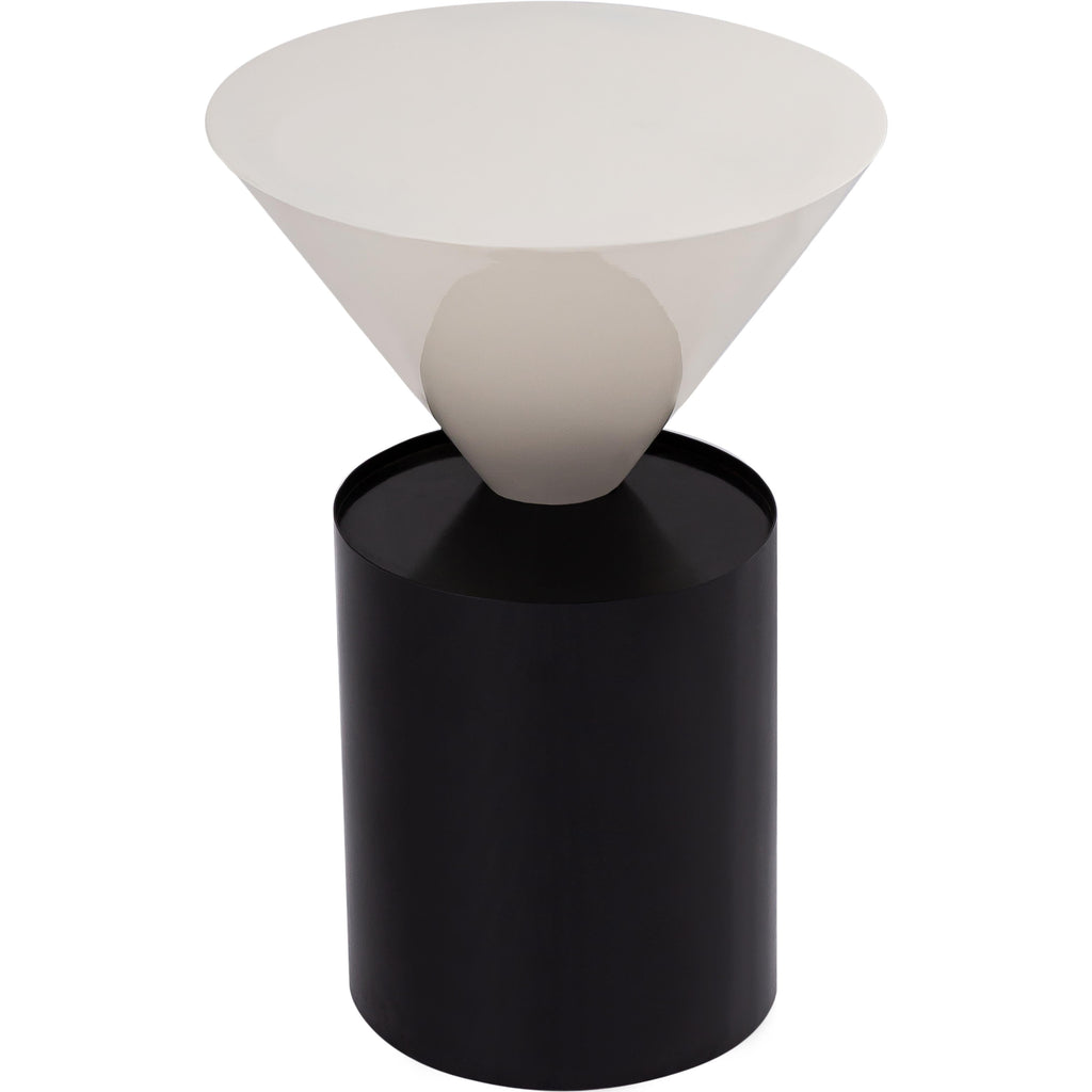 Bring on the sleek! This Damon end table features an artful design that's part sculpture, part useful addition to your living room. The white metal top rests on the matte black metal base in a slightly contrasting combination that is bound to wow from all angles. Although it's perfect on its own, this beautiful piece also looks great when paired with the matching Damon coffee table for added oomph.