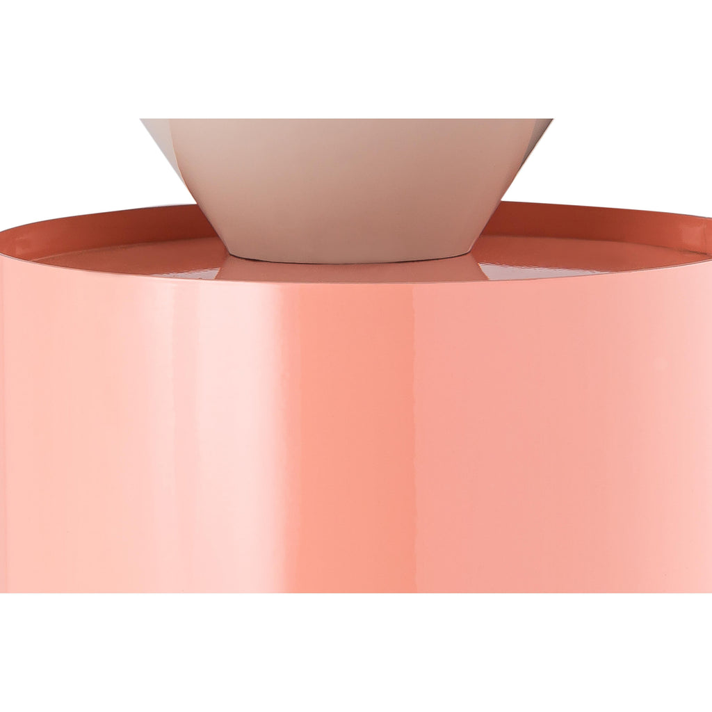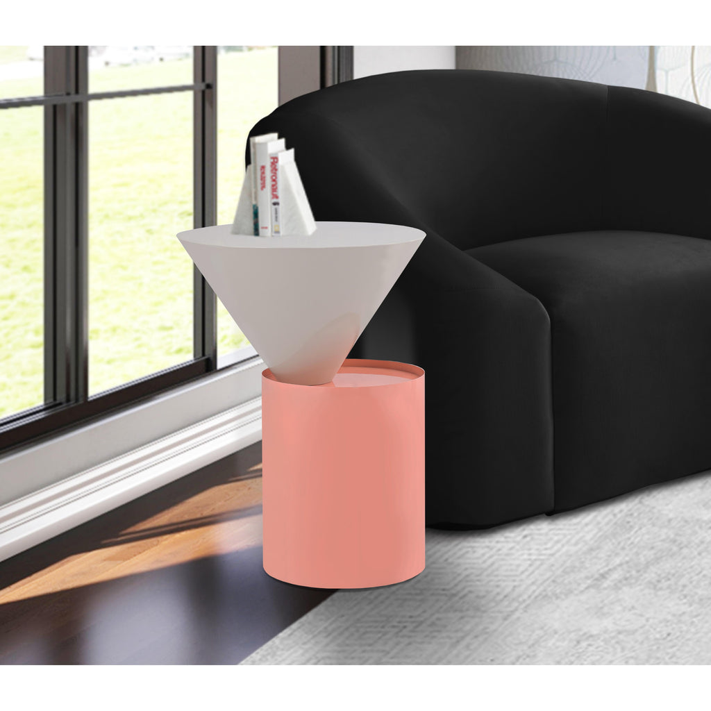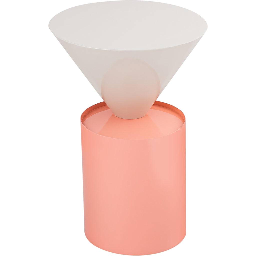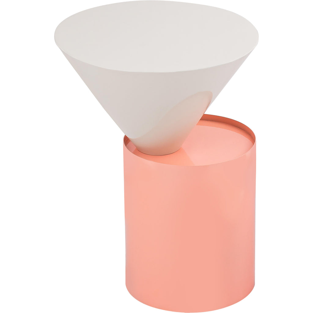 Bring on the sleek! This Damon end table features an artful design that's part sculpture, part useful addition to your living room. The white metal top rests on the matte pink metal base in a slightly contrasting combination that is bound to wow from all angles. Although it's perfect on its own, this beautiful piece also looks great when paired with the matching Damon coffee table for added oomph.