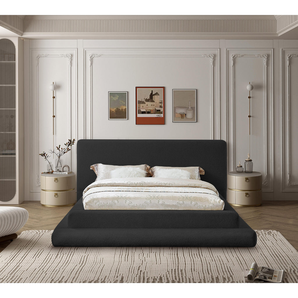 Bring a brand new look to your personal bedroom sanctuary with this Dane teddy fabric bed. The soft faux shearling teddy fabric feels gentle and soothing to your back as you read or watch TV in bed. Neutral black makes this bed an easy-to-coordinate option with other furnishings, and a stacked frame design ensures a pleasantly modern aesthetic from every angle. Construction with premium engineered wood material ensures lasting quality and performance.