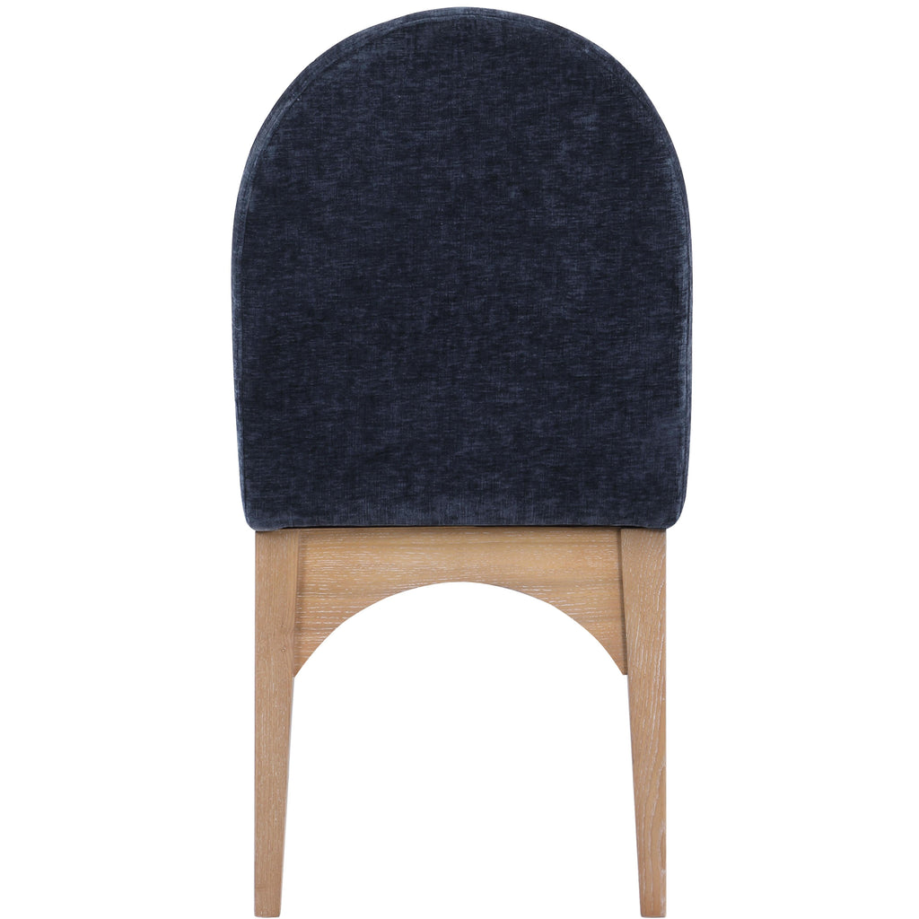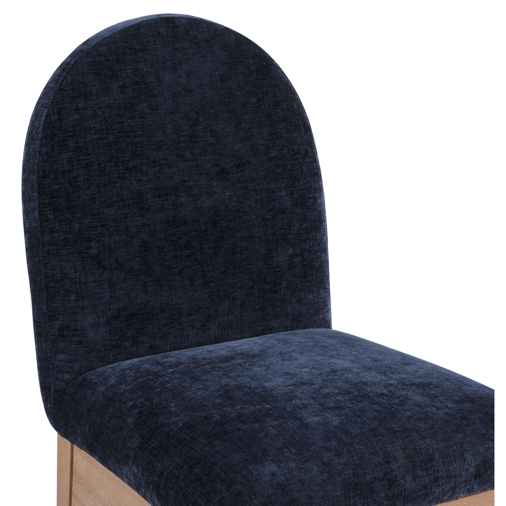 The Waldorf Chenille Fabric Dining Side Chair exudes elegance and comfort. Crafted with solid ash wood, this dining chair boasts a sturdy and durable construction. The natural finished legs provide a warm and welcoming touch to the overall design. The plush navy chenille fabric on the seat and backrest of the chair offers a soft and cozy seating experience, making it an ideal choice for long dinner conversations with family and friends.