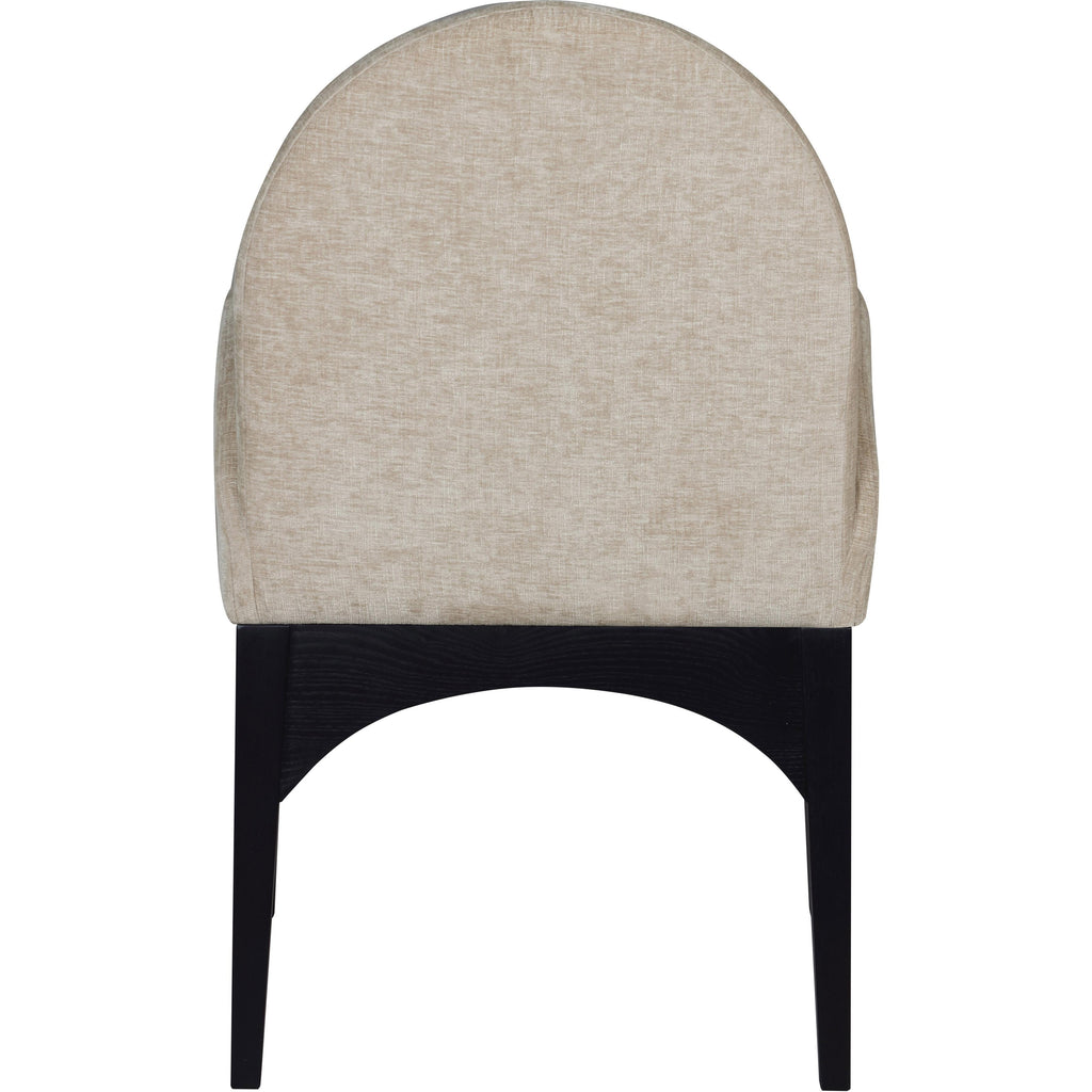 The Waldorf Chenille Fabric Dining Arm Chair exudes elegance and comfort. Crafted with solid ash wood, this dining chair boasts a sturdy and durable construction. The black finished legs provide a sleek and welcoming touch to the overall design. The plush beige chenille fabric on the seat and backrest of the chair offers a soft and cozy seating experience, making it an ideal choice for long dinner conversations with family and friends.