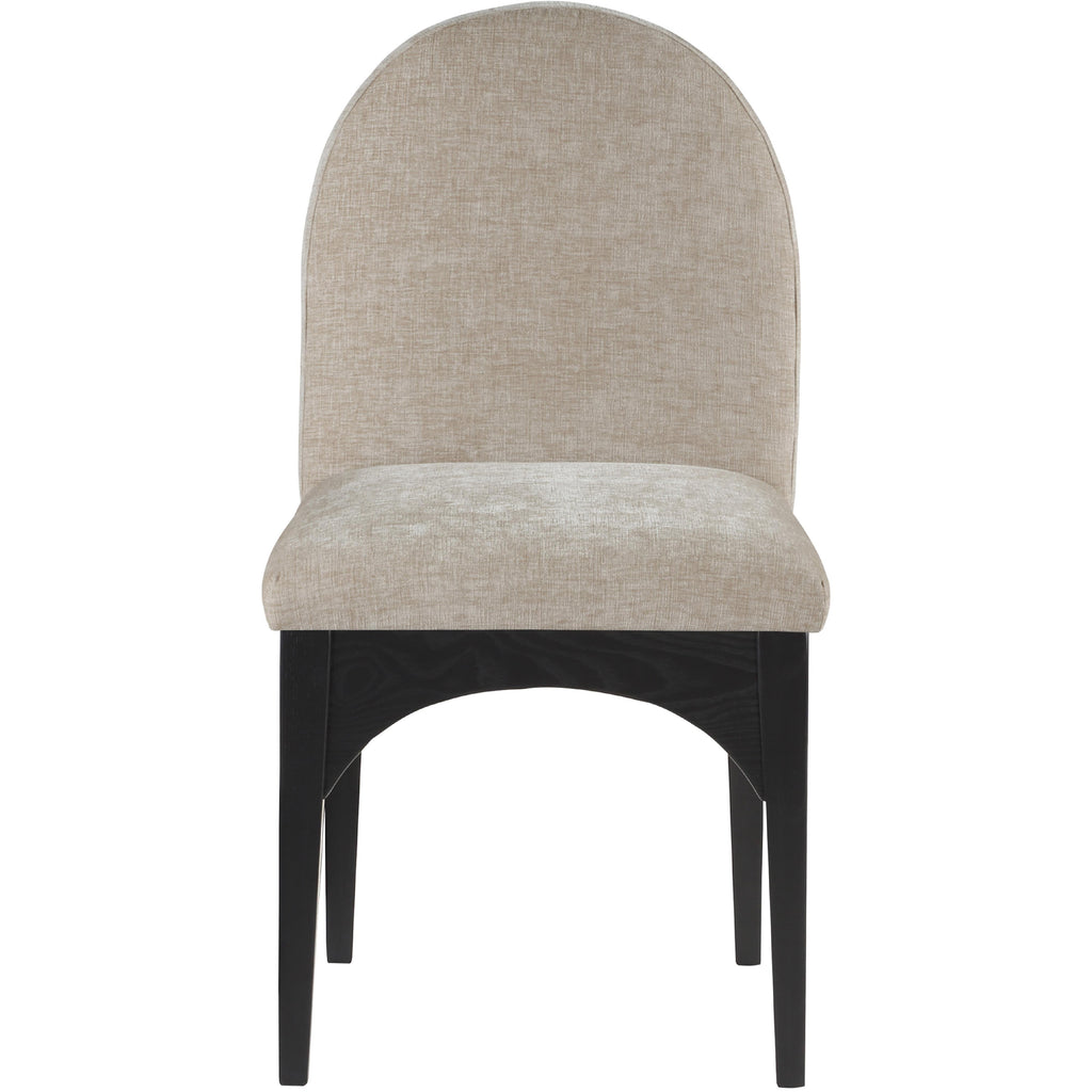 The Waldorf Chenille Fabric Dining Side Chair exudes elegance and comfort. Crafted with solid ash wood, this dining chair boasts a sturdy and durable construction. The black finished legs provide a sleek and welcoming touch to the overall design. The plush beige chenille fabric on the seat and backrest of the chair offers a soft and cozy seating experience, making it an ideal choice for long dinner conversations with family and friends.