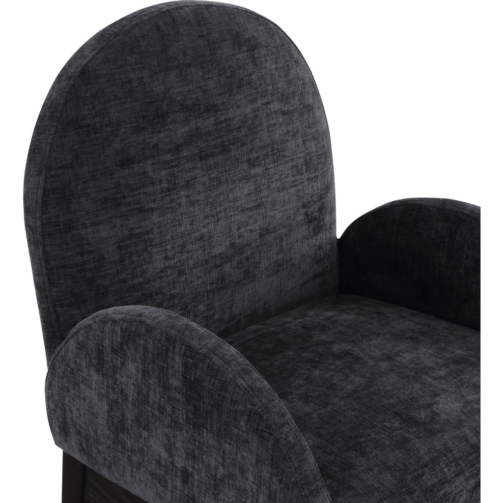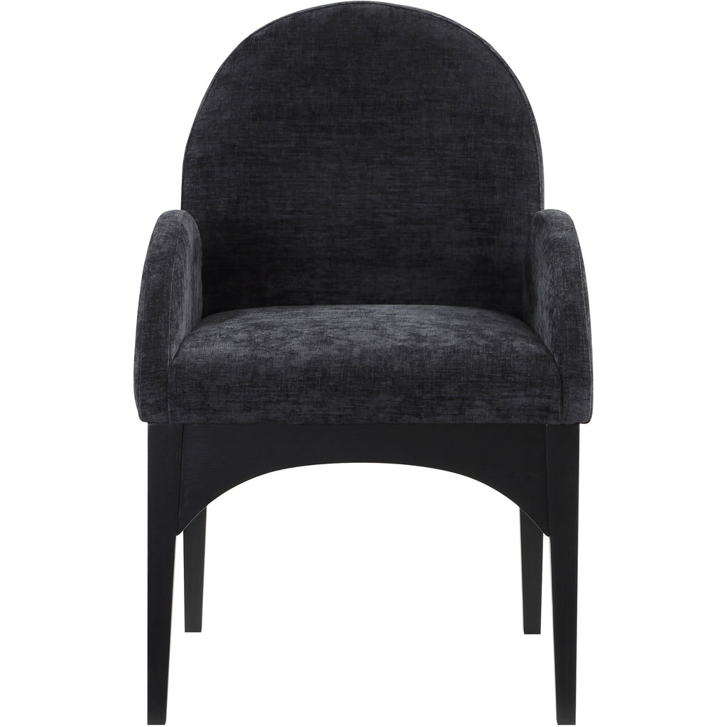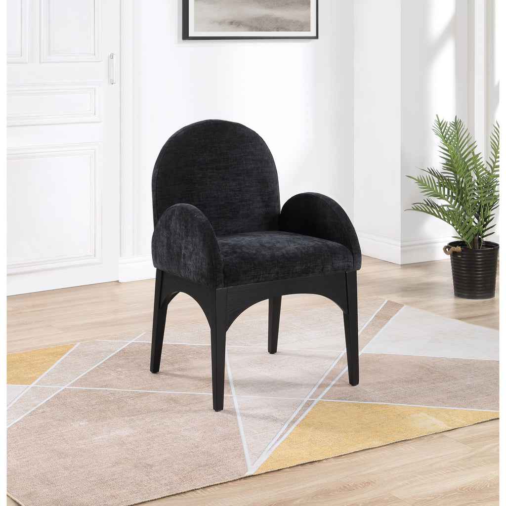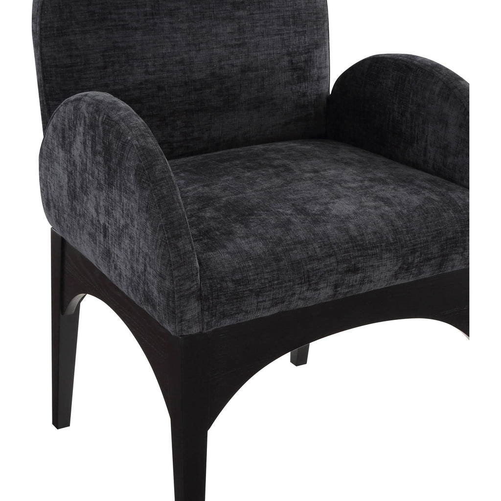 The Waldorf Chenille Fabric Dining Arm Chair exudes elegance and comfort. Crafted with solid ash wood, this dining chair boasts a sturdy and durable construction. The black finished legs provide a sleek and welcoming touch to the overall design. The plush black chenille fabric on the seat and backrest of the chair offers a soft and cozy seating experience, making it an ideal choice for long dinner conversations with family and friends.