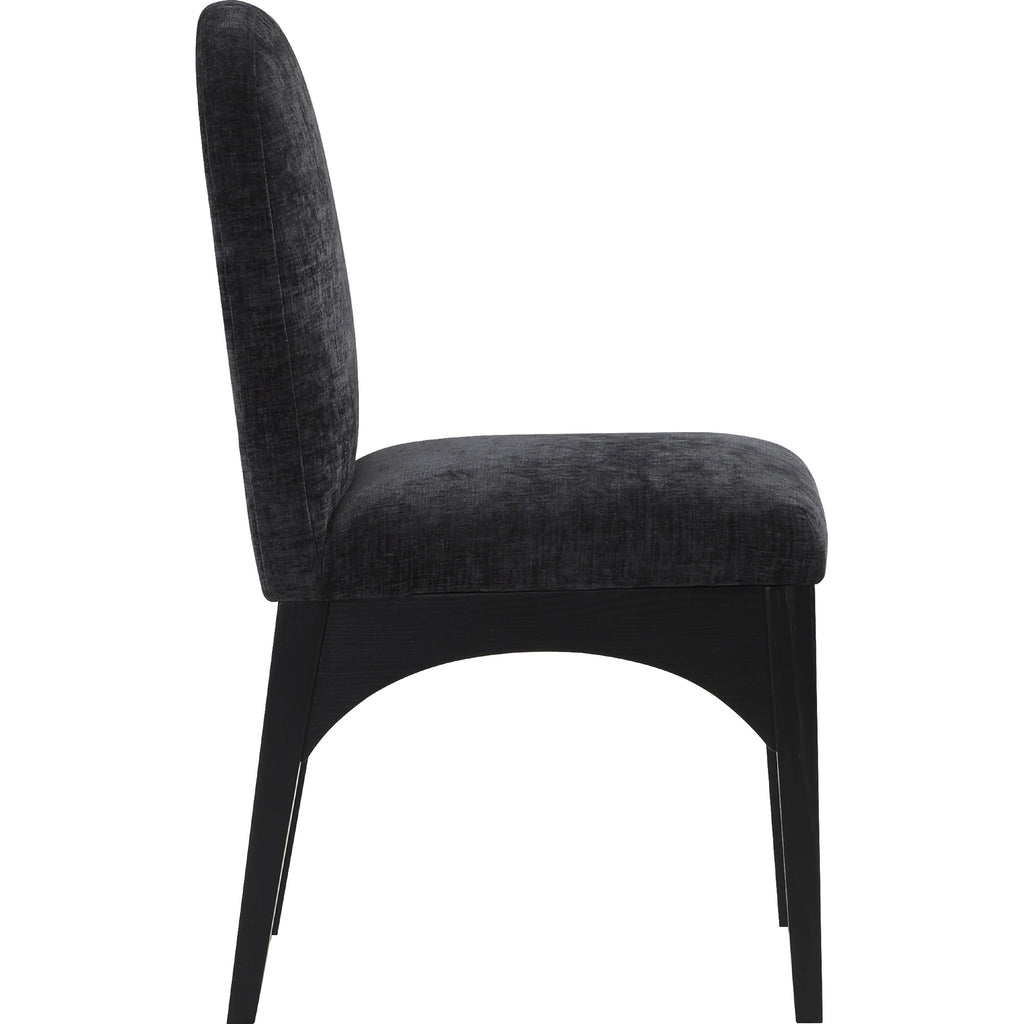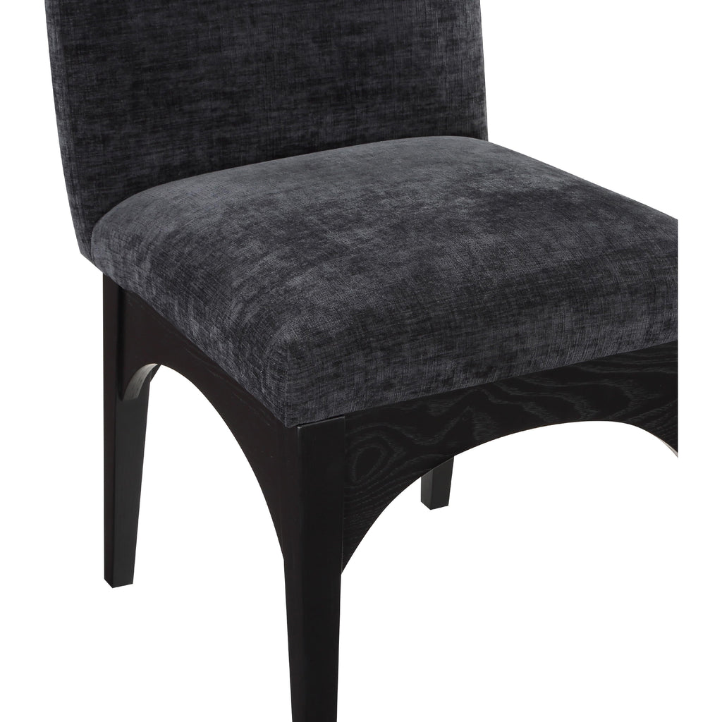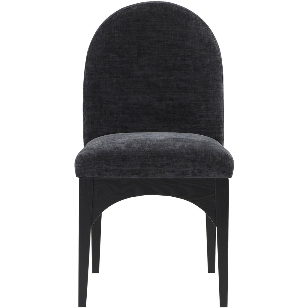 The Waldorf Chenille Fabric Dining Side Chair exudes elegance and comfort. Crafted with solid ash wood, this dining chair boasts a sturdy and durable construction. The black finished legs provide a sleek and welcoming touch to the overall design. The plush black chenille fabric on the seat and backrest of the chair offers a soft and cozy seating experience, making it an ideal choice for long dinner conversations with family and friends.