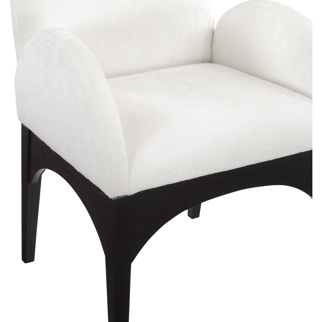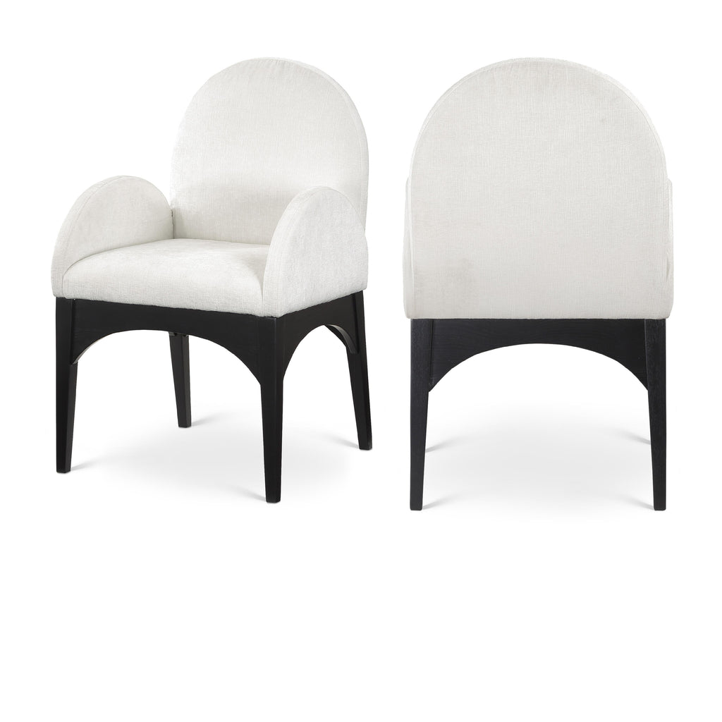The Waldorf Chenille Fabric Dining Arm Chair exudes elegance and comfort. Crafted with solid ash wood, this dining chair boasts a sturdy and durable construction. The black finished legs provide a sleek and welcoming touch to the overall design. The plush cream chenille fabric on the seat and backrest of the chair offers a soft and cozy seating experience, making it an ideal choice for long dinner conversations with family and friends.