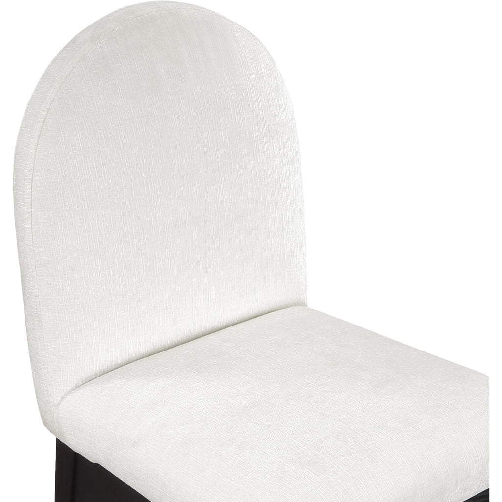 The Waldorf Chenille Fabric Dining Side Chair exudes elegance and comfort. Crafted with solid ash wood, this dining chair boasts a sturdy and durable construction. The black finished legs provide a sleek and welcoming touch to the overall design. The plush cream chenille fabric on the seat and backrest of the chair offers a soft and cozy seating experience, making it an ideal choice for long dinner conversations with family and friends.