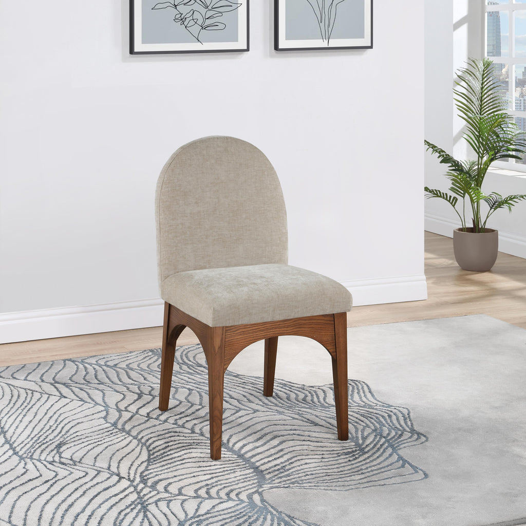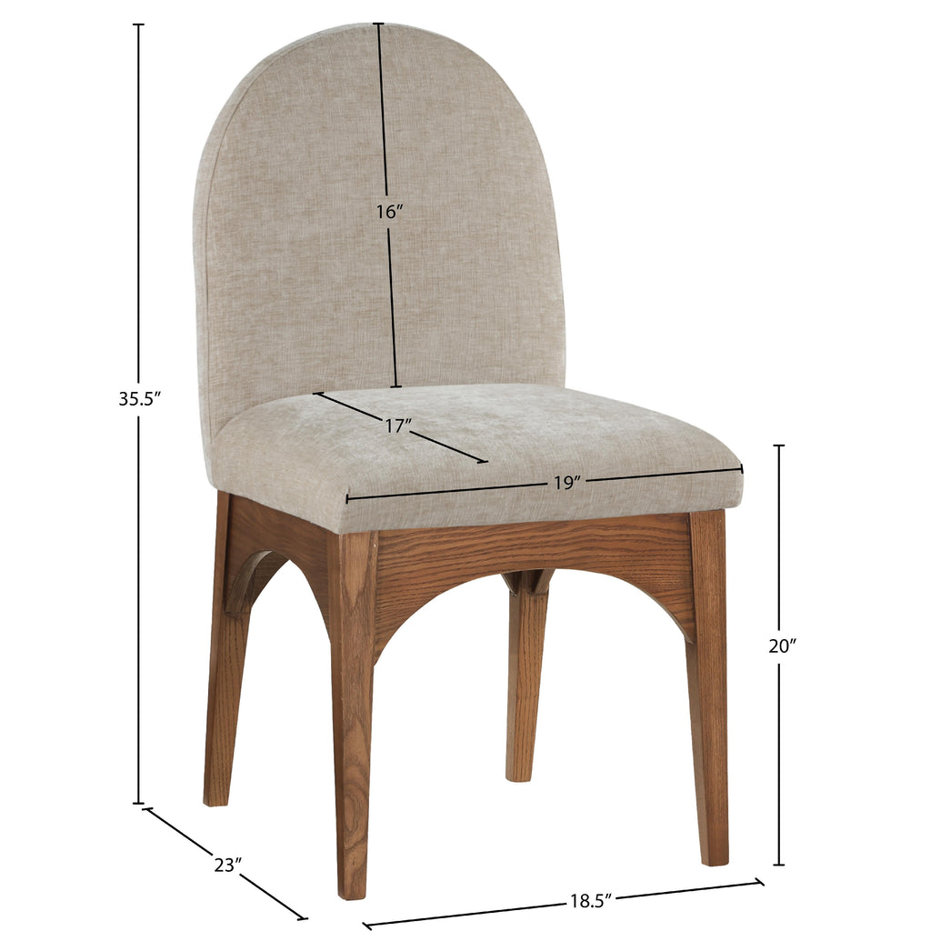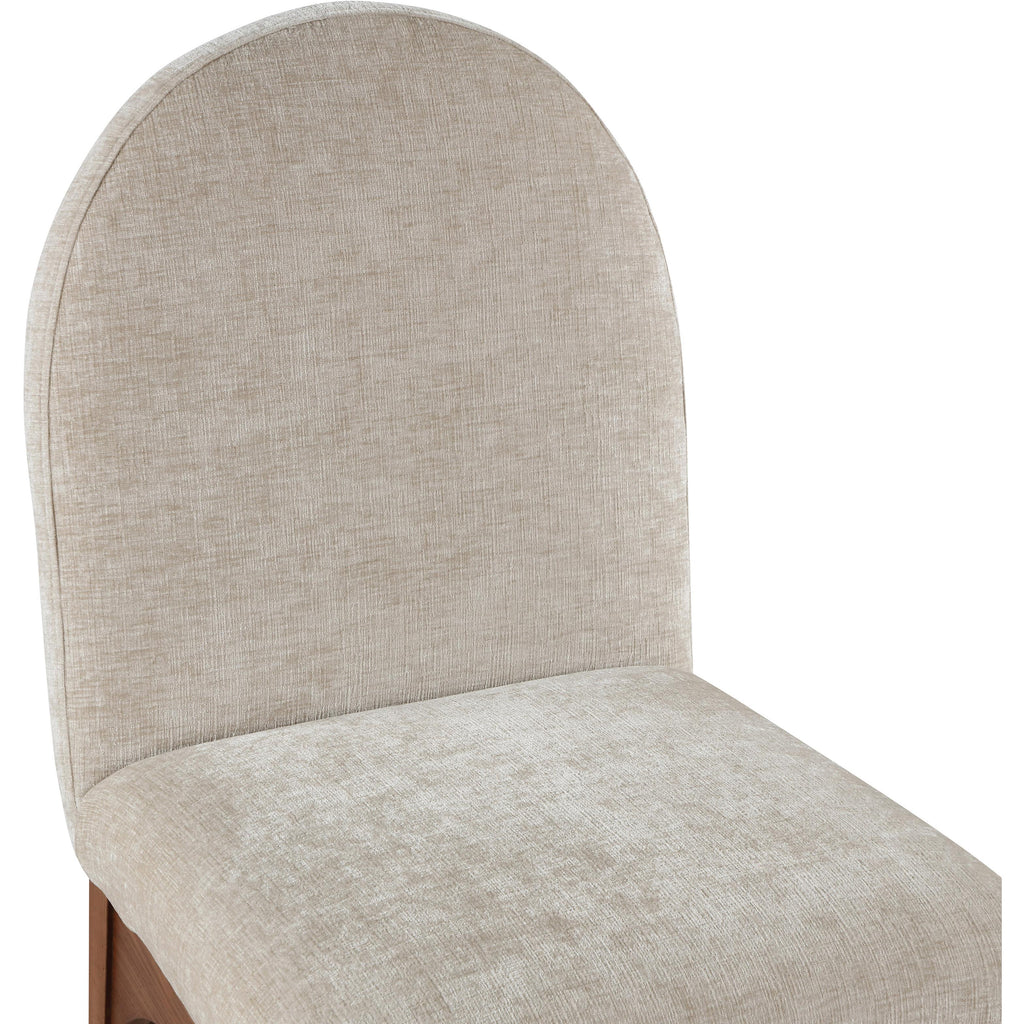 The Waldorf Chenille Fabric Dining Side Chair exudes elegance and comfort. Crafted with solid ash wood, this dining chair boasts a sturdy and durable construction. The walnut finished legs provide a warm and welcoming touch to the overall design. The plush beige chenille fabric on the seat and backrest of the chair offers a soft and cozy seating experience, making it an ideal choice for long dinner conversations with family and friends.