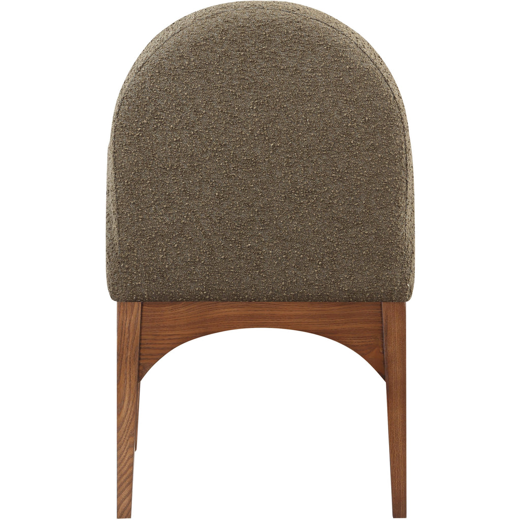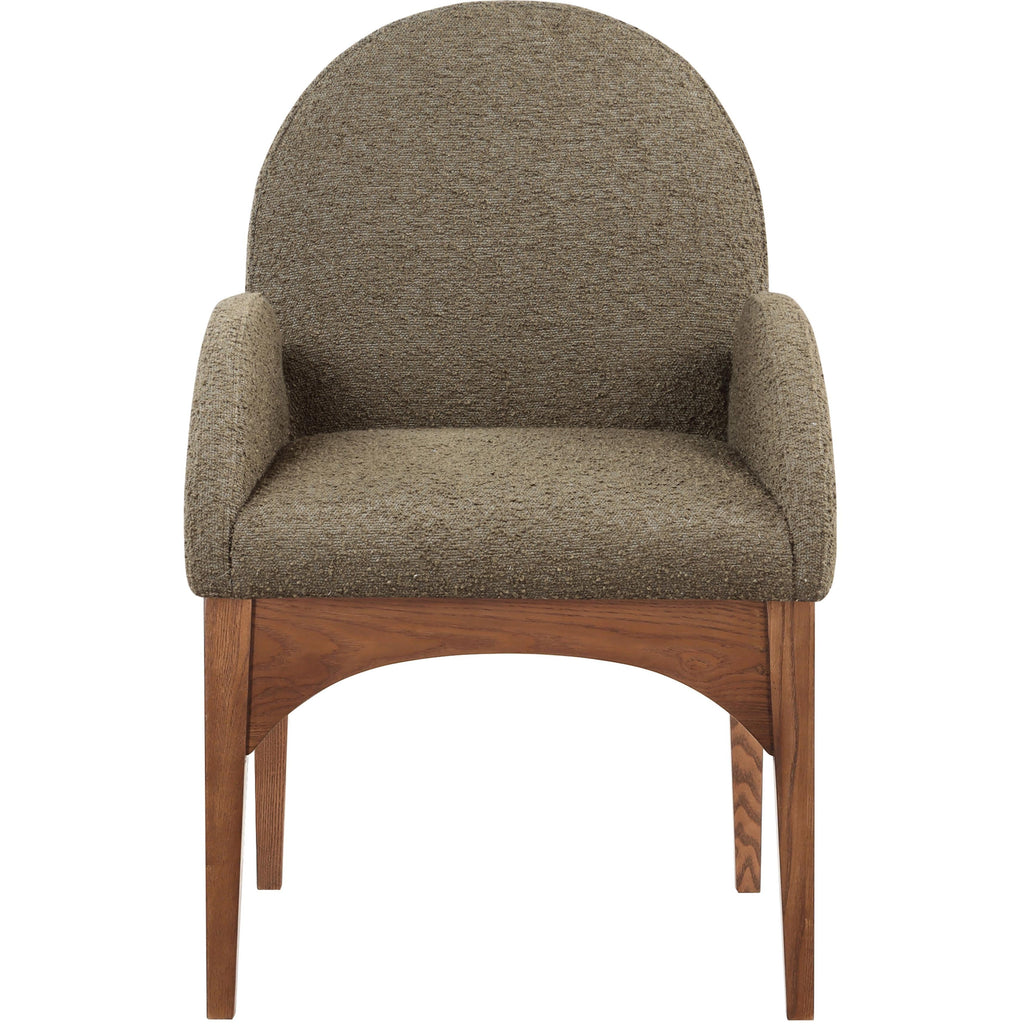 The Waldorf Boucle Fabric Dining Arm Chair exudes elegance and comfort. Crafted with solid ash wood, this dining chair boasts a sturdy and durable construction. The walnut finished legs provide a warm and welcoming touch to the overall design. The plush olive boucle fabric on the seat and backrest of the chair offers a soft and cozy seating experience, making it an ideal choice for long dinner conversations with family and friends.