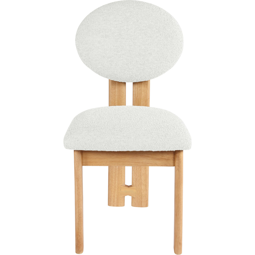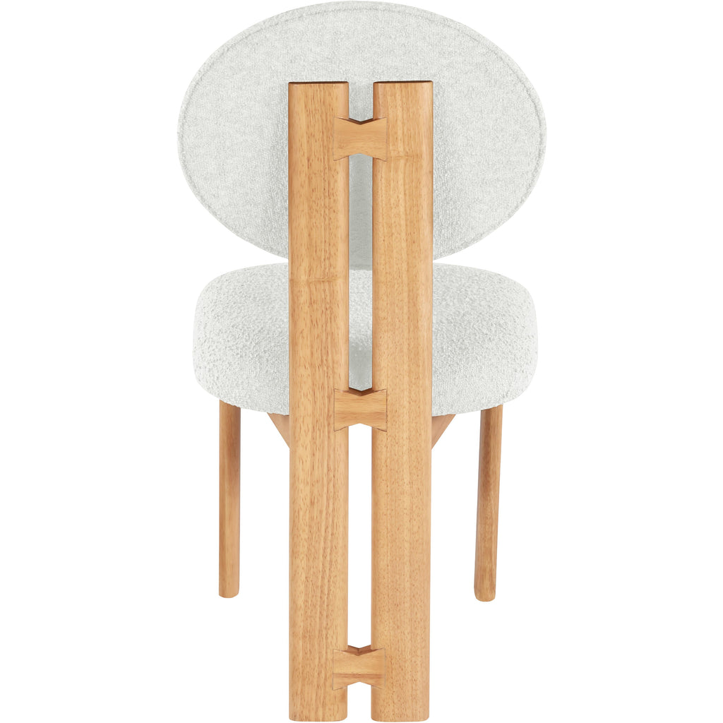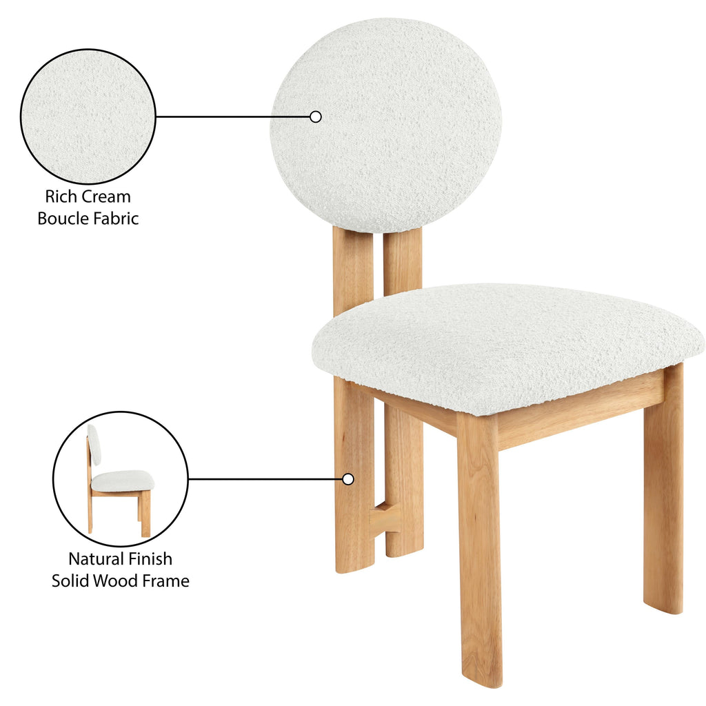 Bring a stunningly contemporary look to your space with this Napa Dining Chair. Featuring a lustrous cream boucle fabric and a sturdy natural finish solid wood frame, this piece is sure to captivate and entice. The inviting design of the chair will make it an ideal choice for your home decor.