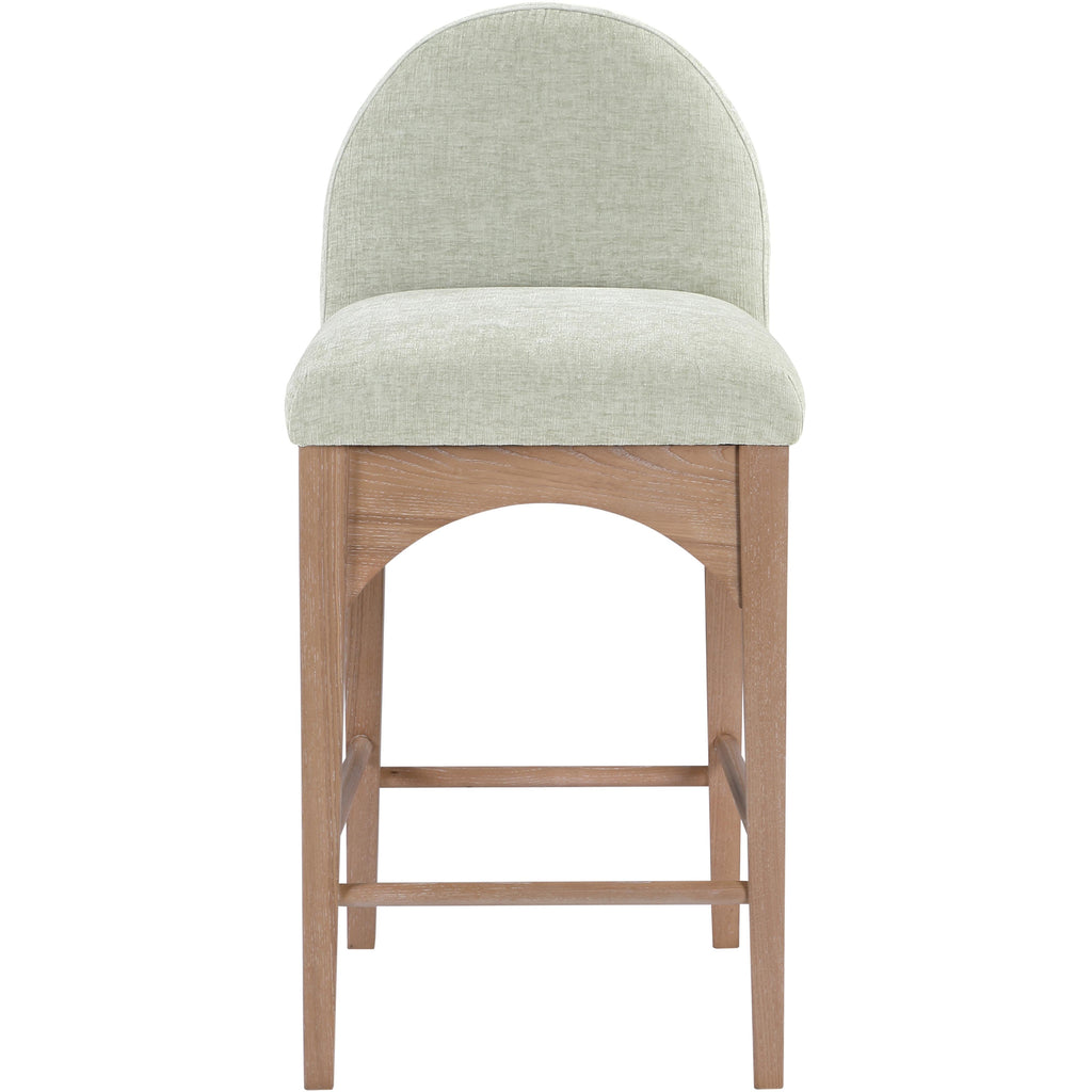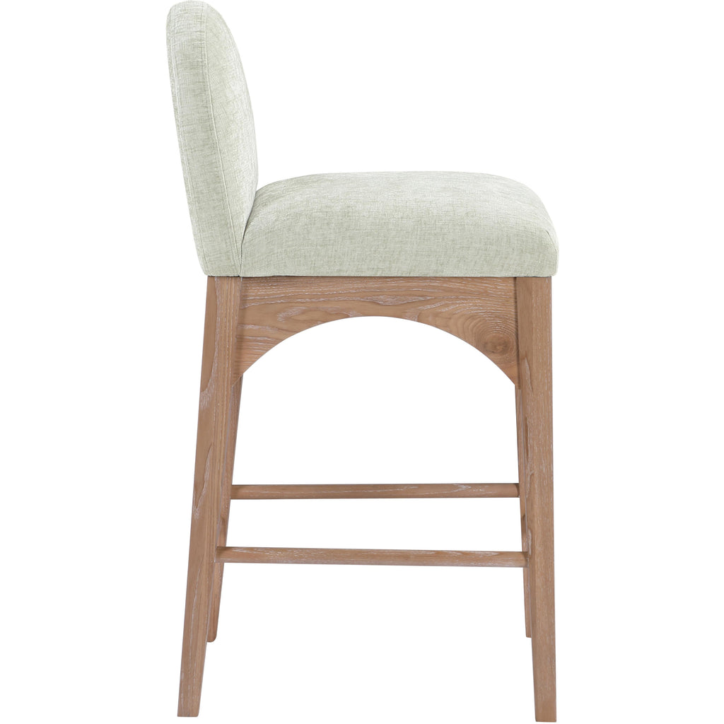 The Waldorf Chenille Fabric Counter Stool exudes elegance and comfort. Crafted with solid ash wood, this stools boasts a sturdy and durable construction. The natural finished legs provide a warm and welcoming touch to the overall design. The plush mint chenille fabric on the seat and backrest of the stool offers a soft and cozy seating experience, making it an ideal choice for long dinner conversations with family and friends.