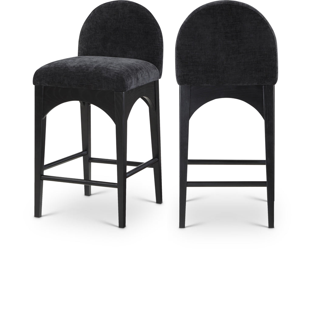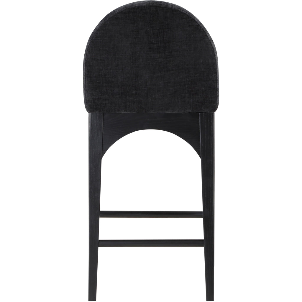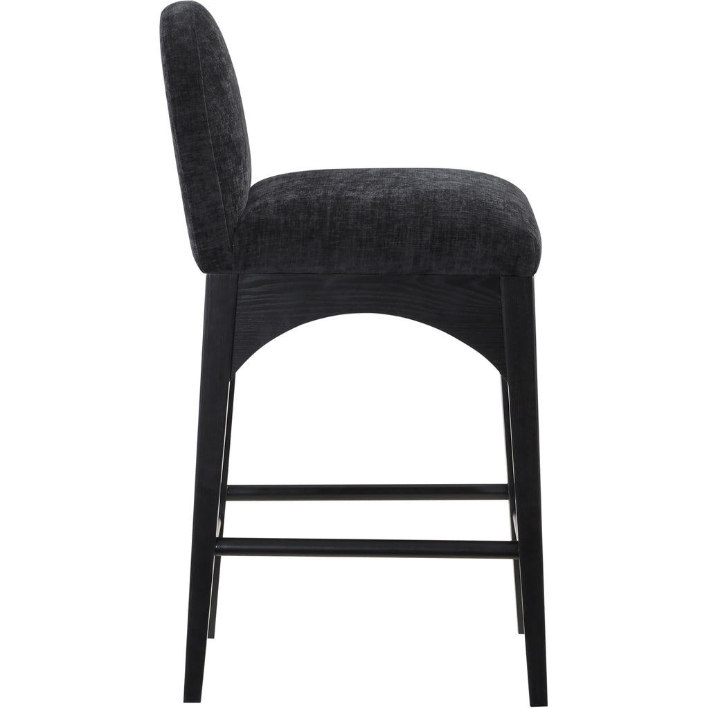 The Waldorf Chenille Fabric Counter stool exudes elegance and comfort. Crafted with solid ash wood, this stool boasts a sturdy and durable construction. The black finished legs provide a sleek and welcoming touch to the overall design. The plush black chenille fabric on the seat and backrest of the stool offers a soft and cozy seating experience, making it an ideal choice for long dinner conversations with family and friends.