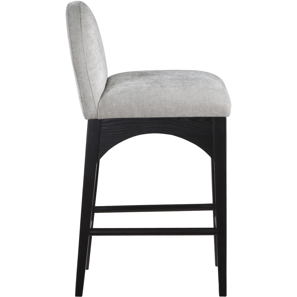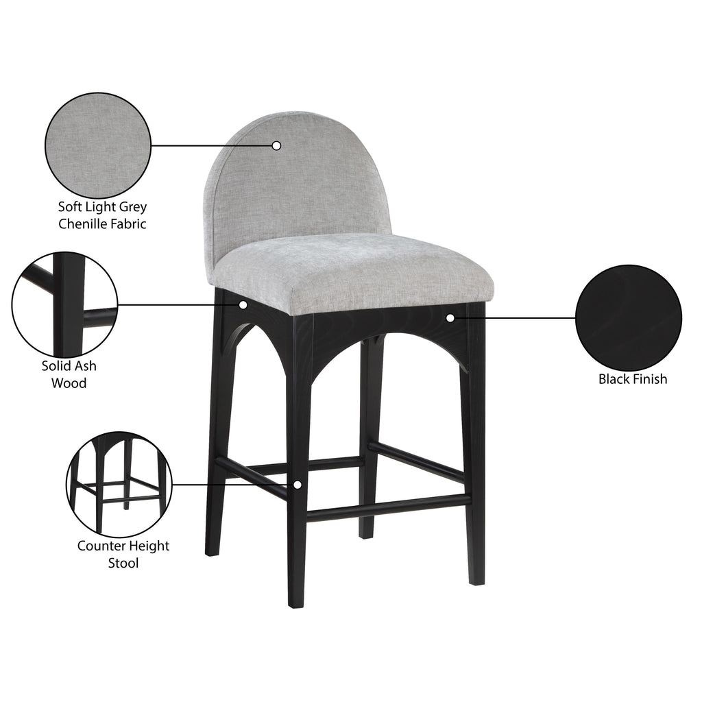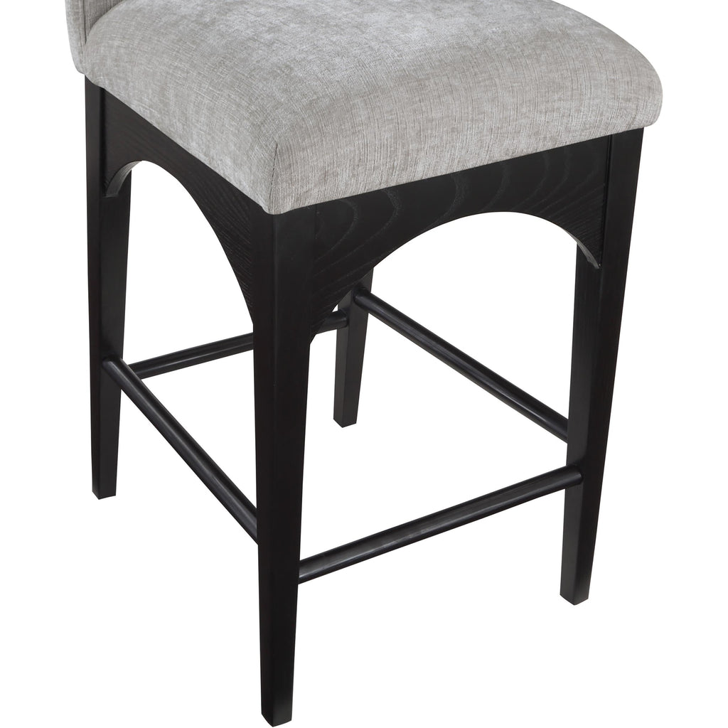 The Waldorf Chenille Fabric Counter stool exudes elegance and comfort. Crafted with solid ash wood, this stool boasts a sturdy and durable construction. The black finished legs provide a sleek and welcoming touch to the overall design. The plush grey chenille fabric on the seat and backrest of the stool offers a soft and cozy seating experience, making it an ideal choice for long dinner conversations with family and friends.