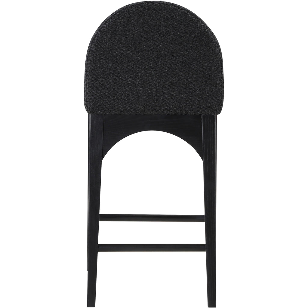 The Waldorf Boucle Fabric Counter Stool exudes elegance and comfort. Crafted with solid ash wood, this stool boasts a sturdy and durable construction. The black finished legs provide a sleek and welcoming touch to the overall design. The plush black boucle fabric on the seat and backrest of the stool offers a soft and cozy seating experience, making it an ideal choice for long dinner conversations with family and friends.