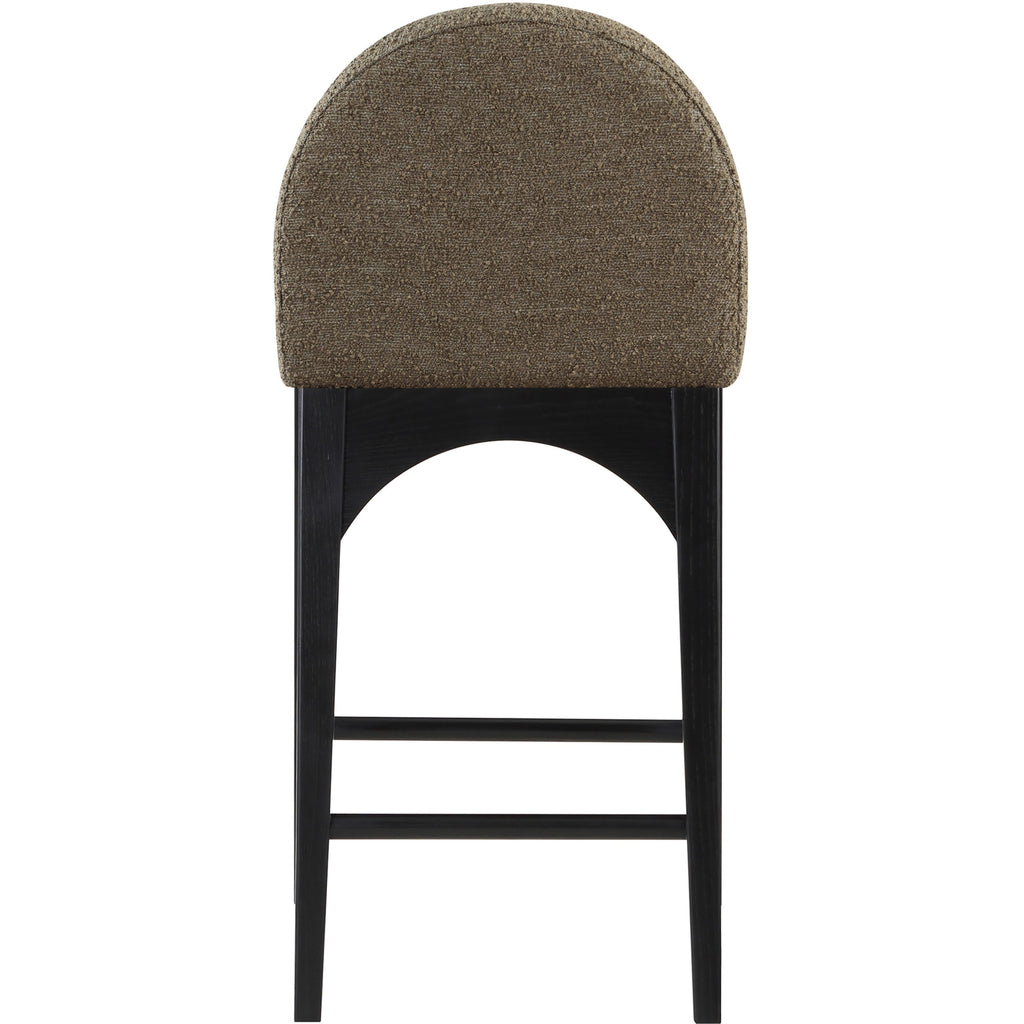 The Waldorf Boucle Fabric Counter Stool exudes elegance and comfort. Crafted with solid ash wood, this stool boasts a sturdy and durable construction. The black finished legs provide a sleek and welcoming touch to the overall design. The plush olive boucle fabric on the seat and backrest of the stool offers a soft and cozy seating experience, making it an ideal choice for long dinner conversations with family and friends.