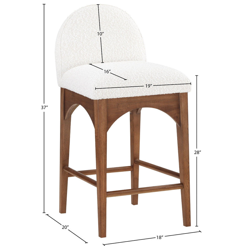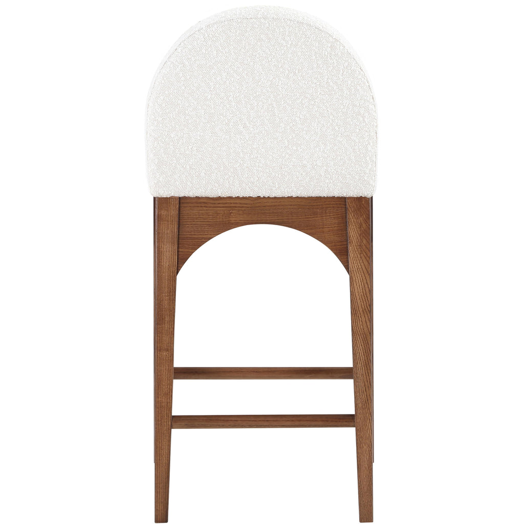 The Waldorf Boucle Fabric Counter Stool exudes elegance and comfort. Crafted with solid ash wood, this stool boasts a sturdy and durable construction. The walnut-finished legs provide a warm and welcoming touch to the overall design. The plush cream boucle fabric on the seat and backrest of the stool offers a soft and cozy seating experience, making it an ideal choice for long dinner conversations with family and friends.