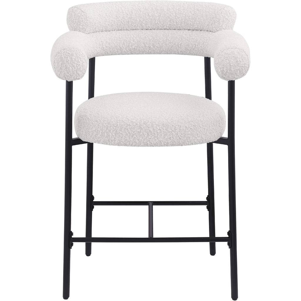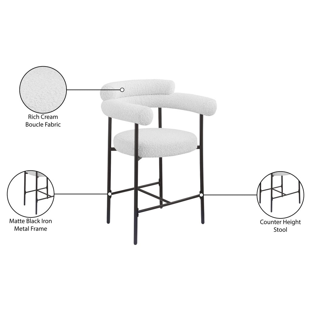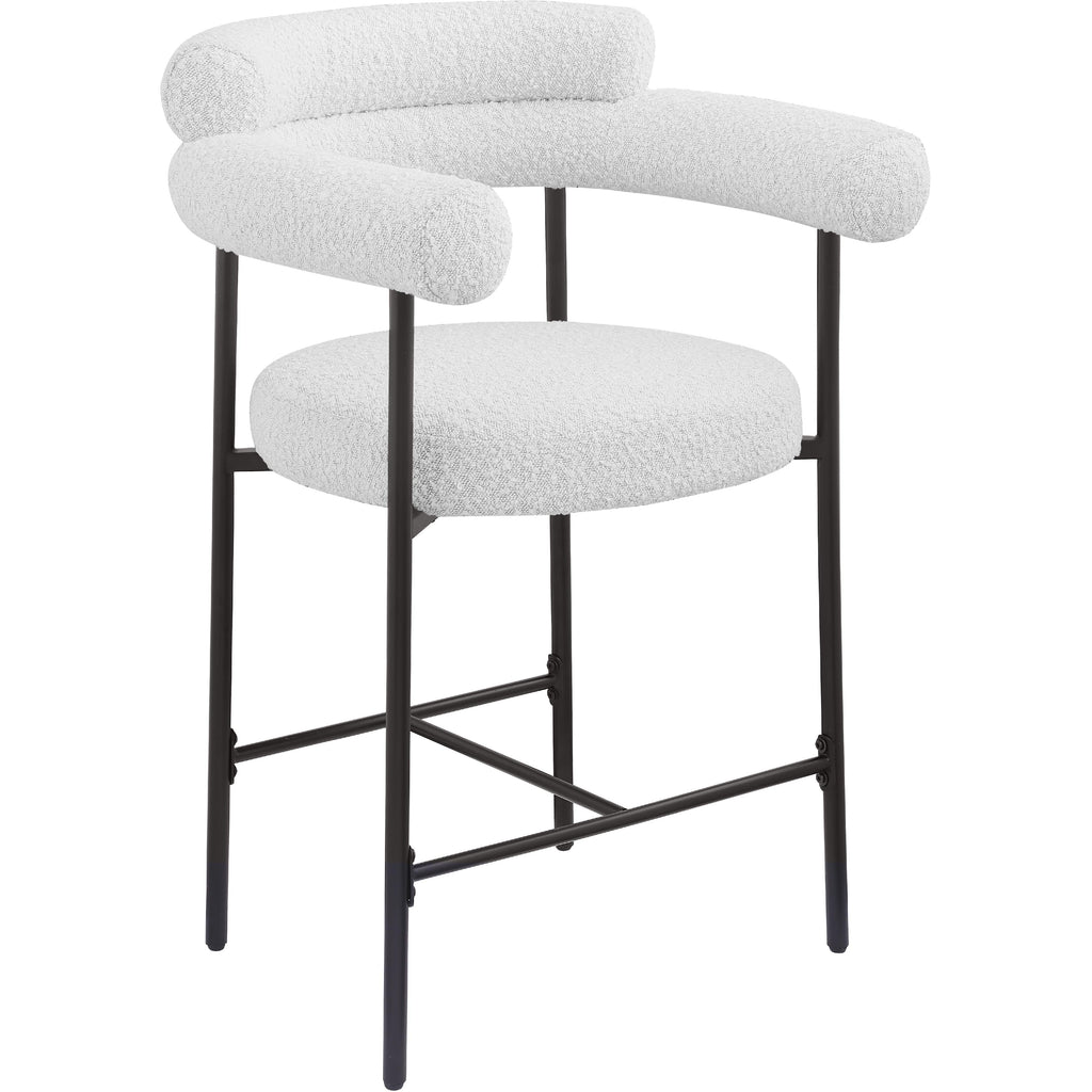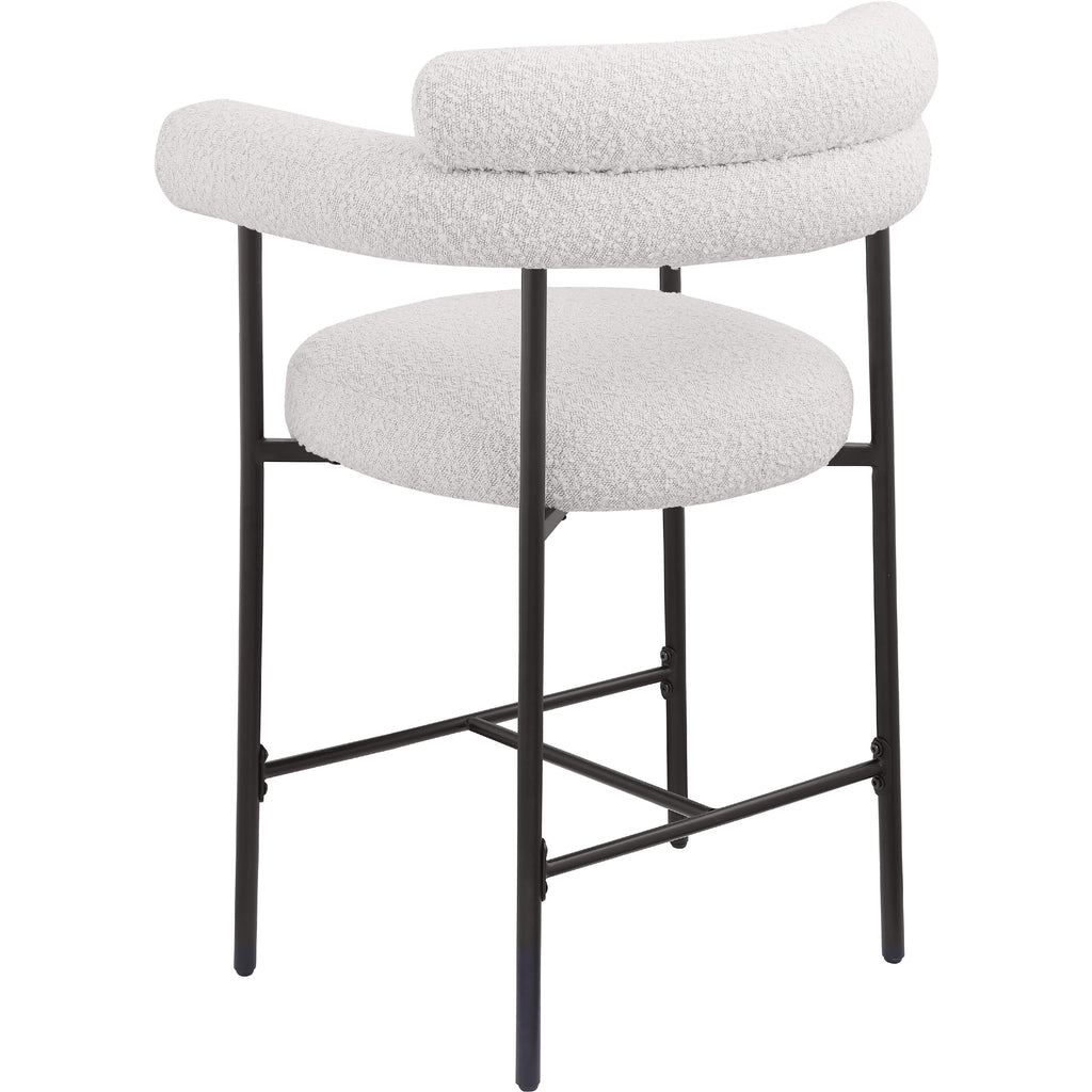 If what you crave is a home bar rescue or kitchen counter rehab, then this Blake counter stool in cream boucle fabric is a good place to start. This beautiful stool has the creature comforts you're looking for to keep guests happy and coming back for more, including a rounded back for structural body support and plump cushions that make sitting and chatting more comfortable. A black matte iron metal frame is sturdy and durable, while the rich cream boucle fabric adds a chic touch.