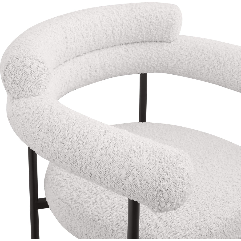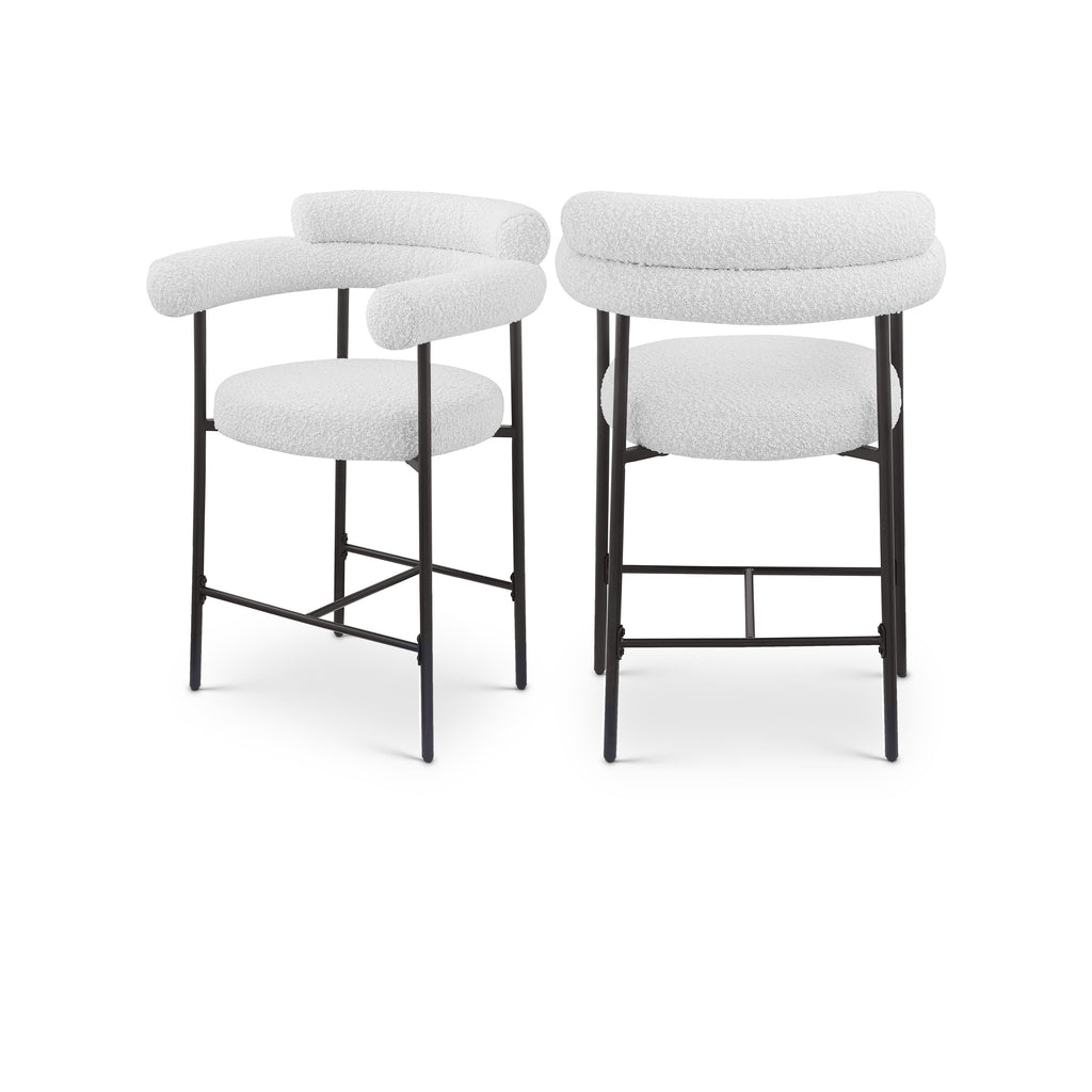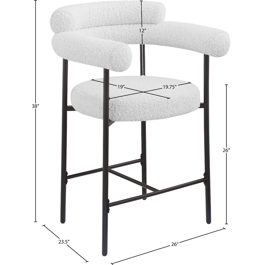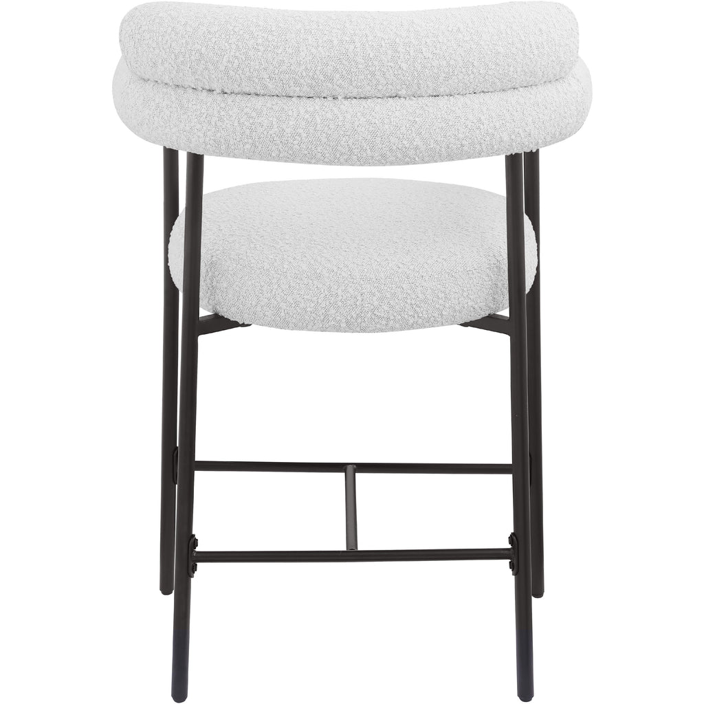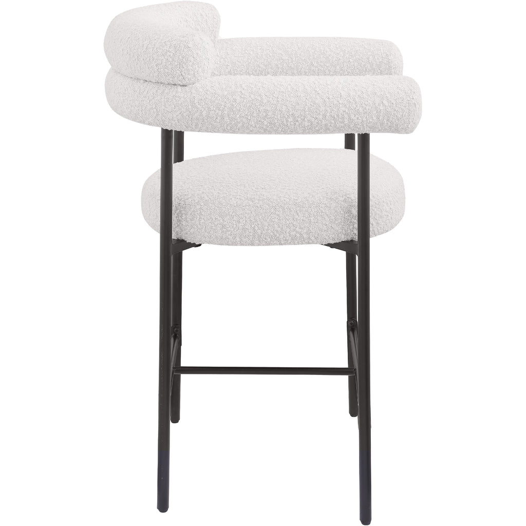 If what you crave is a home bar rescue or kitchen counter rehab, then this Blake counter stool in cream boucle fabric is a good place to start. This beautiful stool has the creature comforts you're looking for to keep guests happy and coming back for more, including a rounded back for structural body support and plump cushions that make sitting and chatting more comfortable. A black matte iron metal frame is sturdy and durable, while the rich cream boucle fabric adds a chic touch.