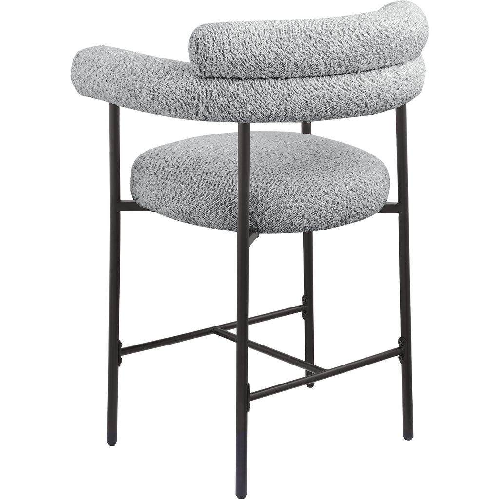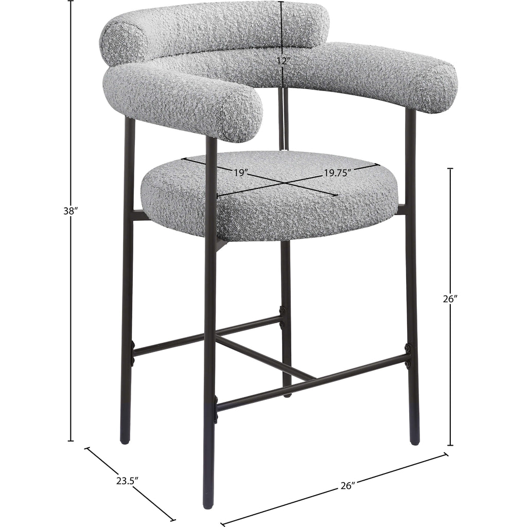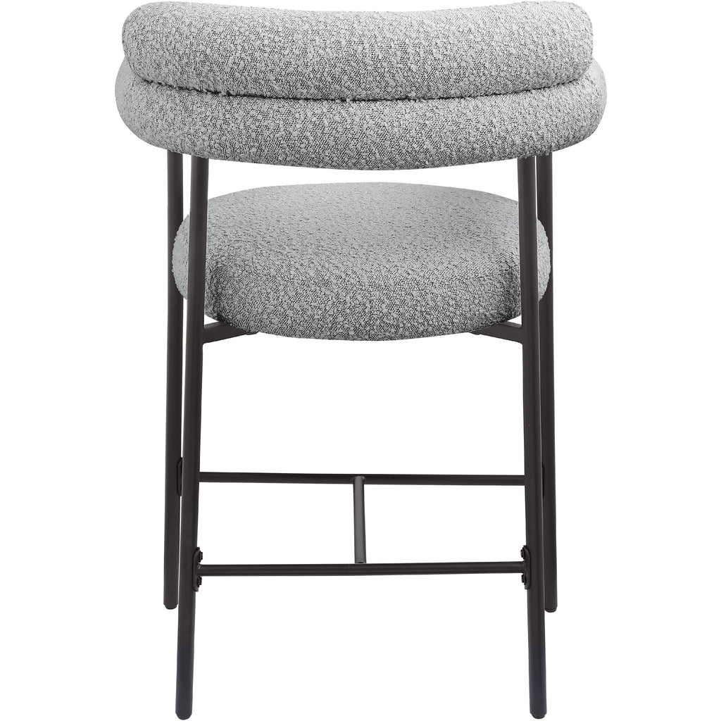 If what you crave is a home bar rescue or kitchen counter rehab, then this Blake counter stool in grey boucle fabric is a good place to start. This beautiful stool has the creature comforts you're looking for to keep guests happy and coming back for more, including a rounded back for structural body support and plump cushions that make sitting and chatting more comfortable. A black matte iron metal frame is sturdy and durable, while the rich grey boucle fabric adds a chic touch.