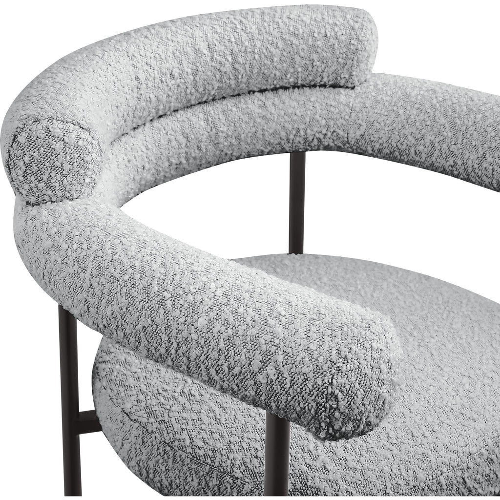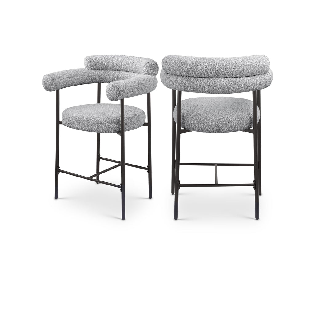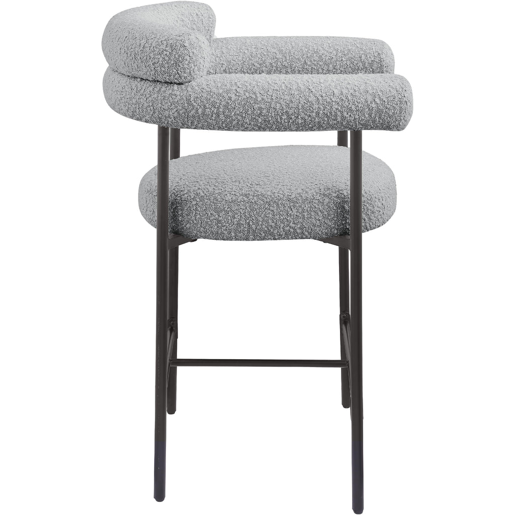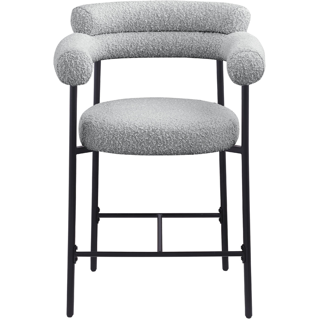 If what you crave is a home bar rescue or kitchen counter rehab, then this Blake counter stool in grey boucle fabric is a good place to start. This beautiful stool has the creature comforts you're looking for to keep guests happy and coming back for more, including a rounded back for structural body support and plump cushions that make sitting and chatting more comfortable. A black matte iron metal frame is sturdy and durable, while the rich grey boucle fabric adds a chic touch.