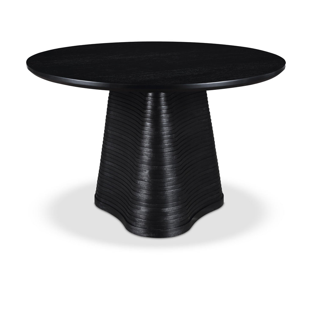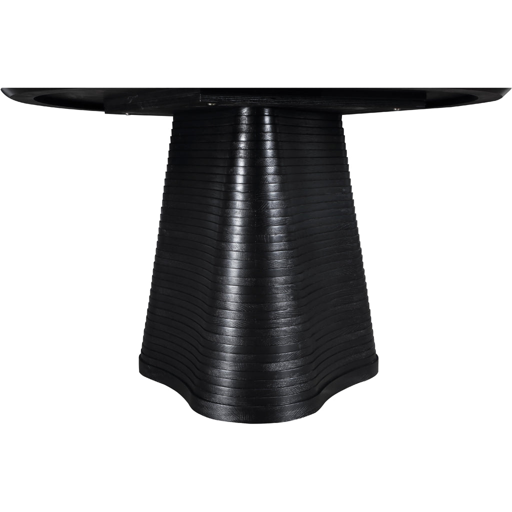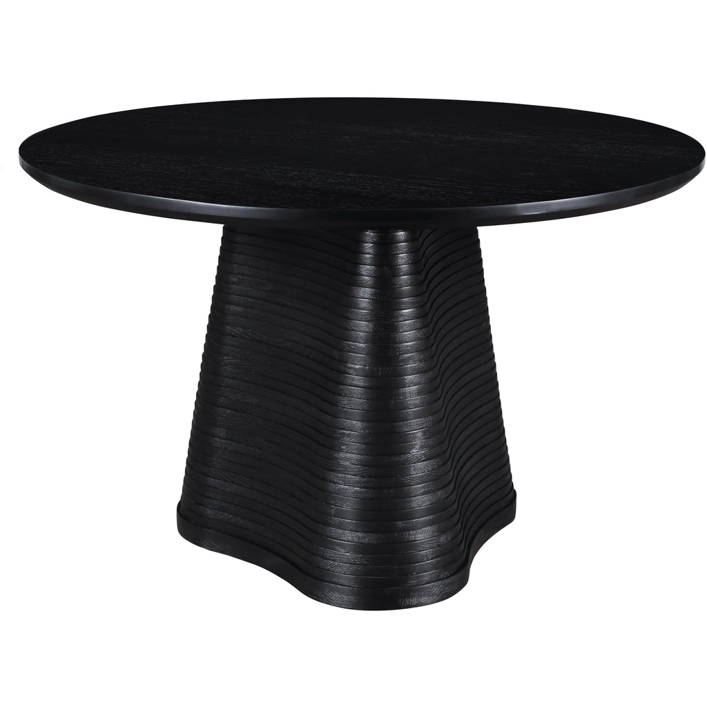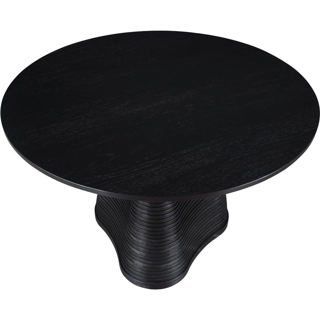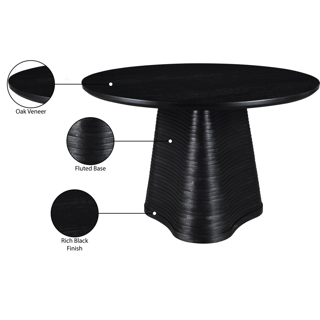 Gather your favorite people around this handsome Bernada Black Dining Table. Made to serve as a backdrop for small, intimate meals, this dining table features a rich black finish and a fluted base that makes it a true showstopper from every angle. It's made from a combination of solid wood, MDF, and oak veneer, giving it a durable slant that makes it ideal for busy dining spaces. The natural wood grain variation gives this table character, while its midcentury design makes it easy to blend nicely with existing modern and traditional decorative settings.