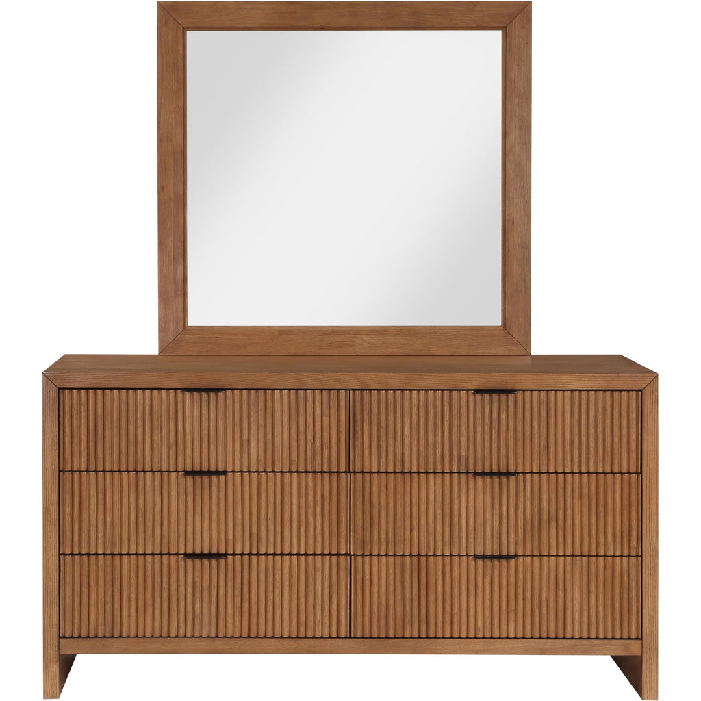 The exquisite Fairfax Dresser is a perfect blend of style and functionality. The meticulously crafted fluted drawer fronts, with their subtle grooves, lend a touch of sophistication to the piece. The matte black metal handles are not only visually appealing but also easy to grip, making it effortless to open and close the drawers. The dresser is crafted from solid wood, providing a durable and sturdy construction. Its sleek walnut finish enhances its modern and contemporary appeal, making it an exceptional addition to any living space.