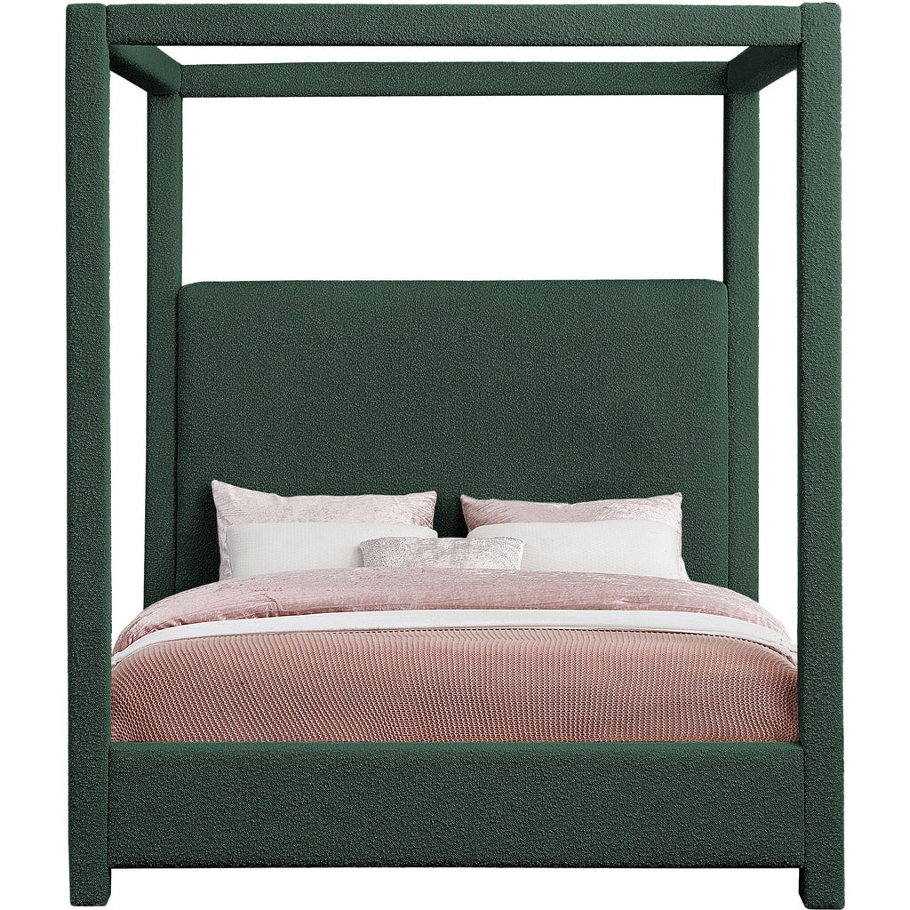 Experience the epitome of luxury and serenity with the Eden Boucle Fabric Canopy Bed, a majestic haven that elevates your bedroom into a royal chamber. Wrapped in a rich green boucle fabric, this captivating bed exudes timeless elegance and invites you to indulge in restful nights and dreamy mornings. The airy canopy, draped in the same luxurious black boucle fabric, creates a sense of intimacy and seclusion, transforming your sleeping space into a private sanctuary. Imagine reading a captivating book or enjoying a late-night conversation under the soft glow of string lights draped across the canopy, creating a truly magical atmosphere.