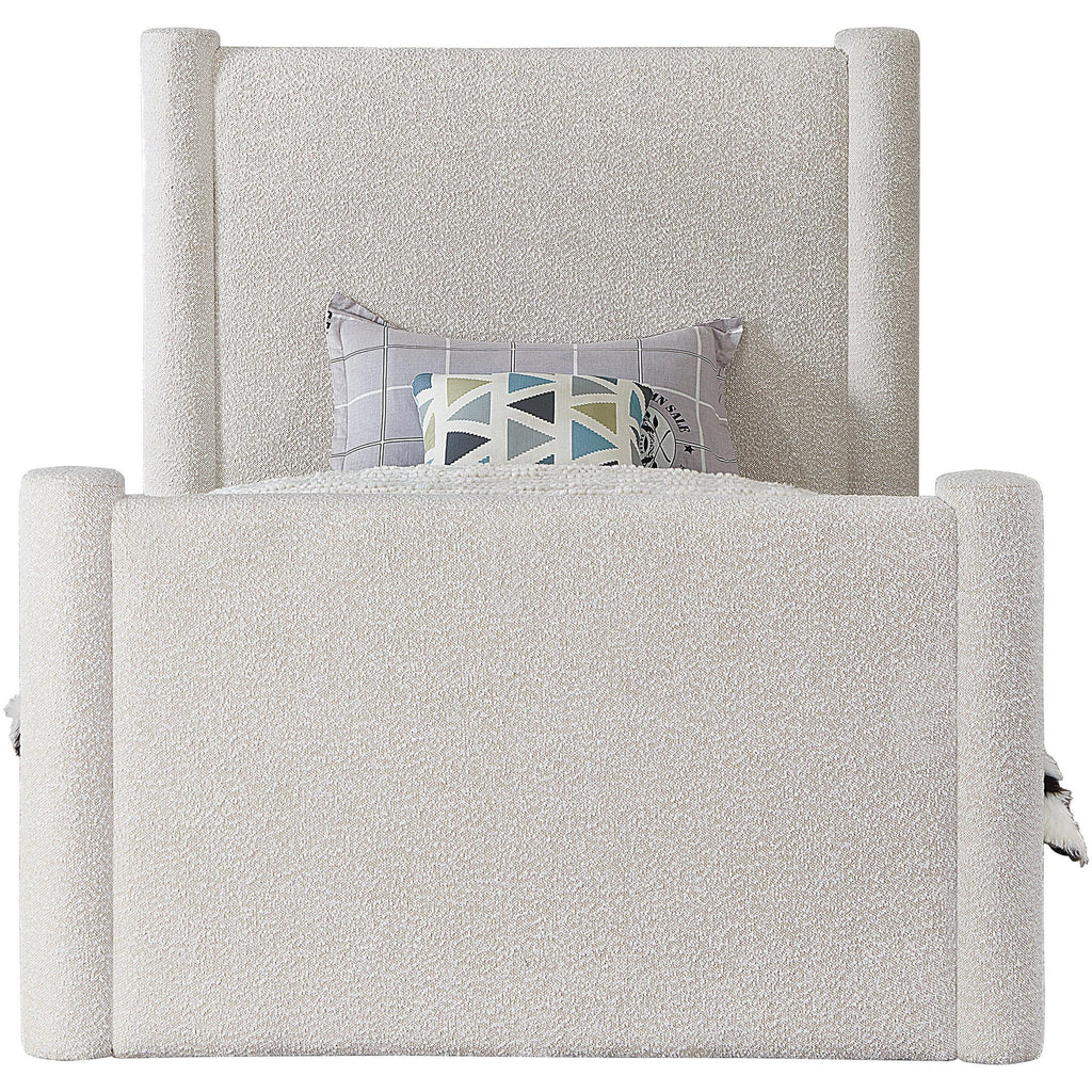 Revamp your bedroom decor by adding the gorgeous and stylish Elias Boucle Twin Bed. Featuring a sleek and minimalistic design, this bed is constructed with a solid wood inner frame for long-lasting durability. The soft cream boucle upholstery adds a touch of elegance to your bedroom, making it a perfect addition to any modern or contemporary living space.