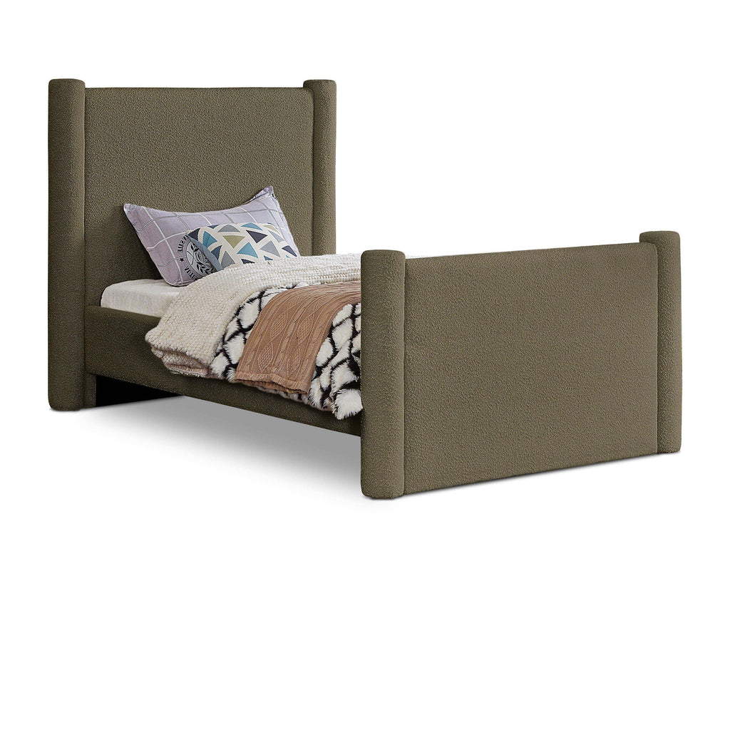 Revamp your bedroom decor by adding the gorgeous and stylish Elias Boucle Twin Bed. Featuring a sleek and minimalistic design, this bed is constructed with a solid wood inner frame for long-lasting durability. The soft olive green boucle upholstery adds a touch of elegance to your bedroom, making it a perfect addition to any modern or contemporary living space.