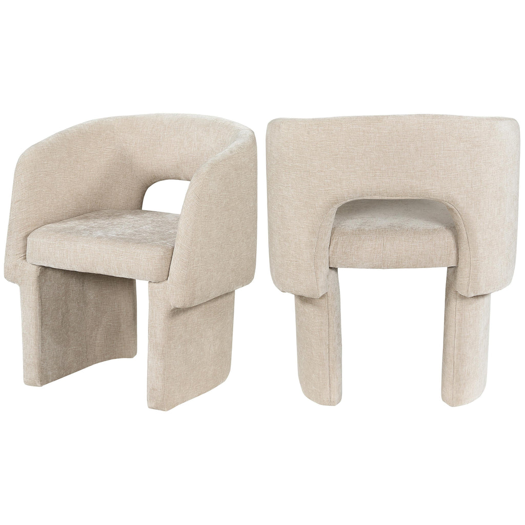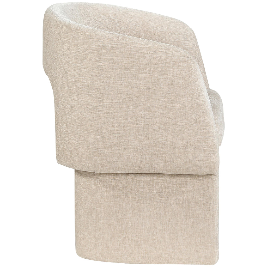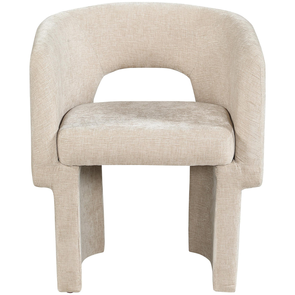 Give your dining room a blast of contemporary energy with his Emmet chenille fabric dining chair. Rich biege chenille fabric upholstery covers this chair from top to bottom, giving it a luxe feel that's soft to the touch and to the skin. The curvy back adds visual interest, and a steel inner frame ensures long-lived resilience and support. Buy this chair in multiples and pair it with the table of your choice for a fast and fabulous dining room rehab.