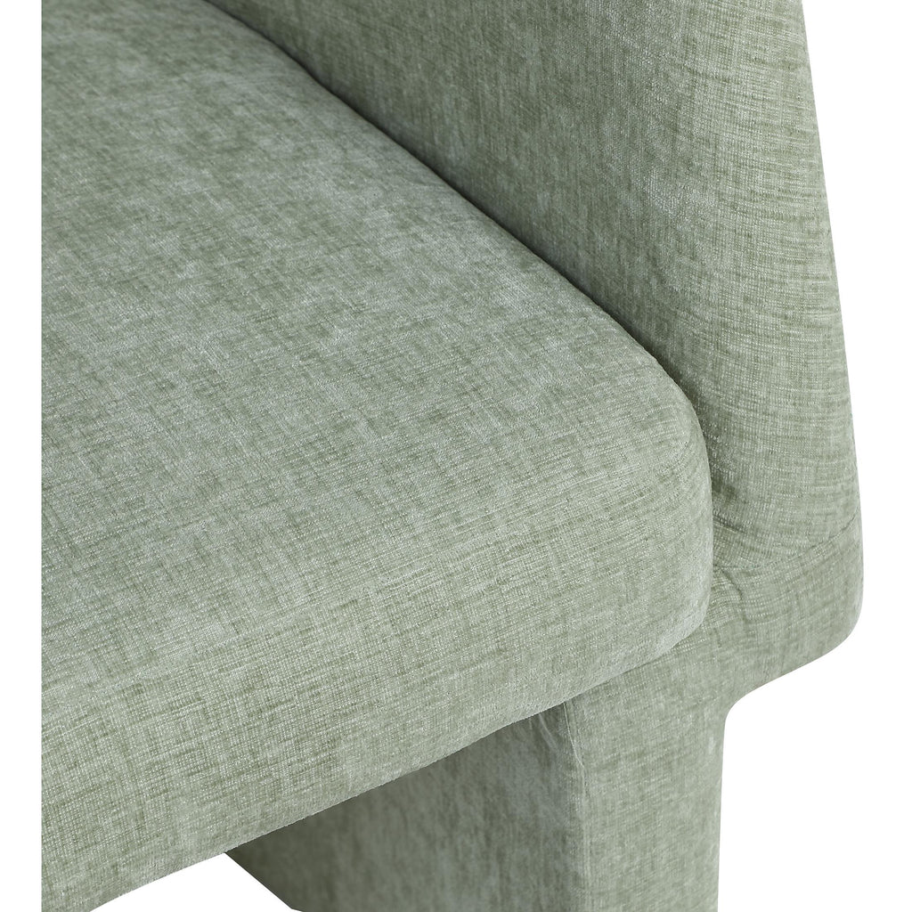 Give your dining room a blast of contemporary energy with his Emmet chenille fabric dining chair. Rich mint chenille fabric upholstery covers this chair from top to bottom, giving it a luxe feel that's soft to the touch and to the skin. The curvy back adds visual interest, and a steel inner frame ensures long-lived resilience and support. Buy this chair in multiples and pair it with the table of your choice for a fast and fabulous dining room rehab.
