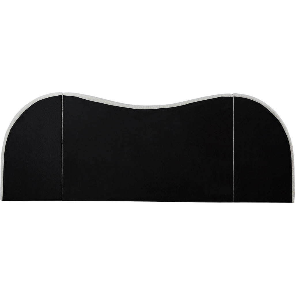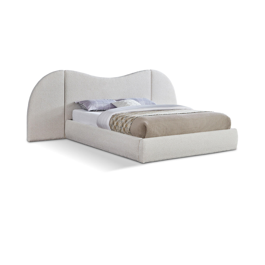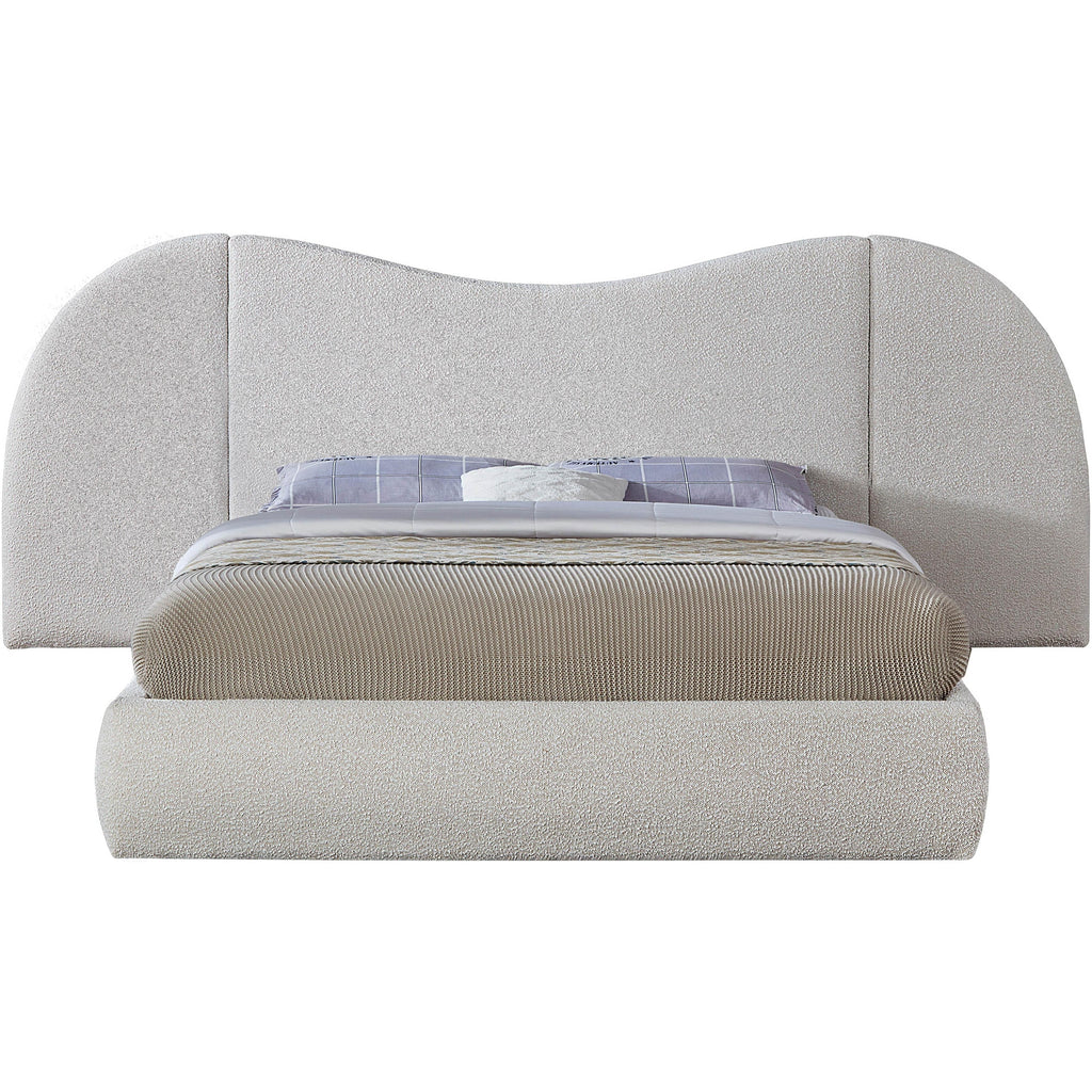 Awaken to the promise of a blissful slumber with the Everest Boucle Fabric Bed, a luxurious haven that seamlessly blends classic elegance with contemporary design. Crafted with a sumptuous, rich cream boucle fabric, this bed beckons you to sink into its cloud-like embrace, inviting peaceful nights and rejuvenating mornings. Its gently curved headboard transcends mere aesthetics, offering unparalleled flexibility to suit your preferences and space. Removable side panels grant you the freedom to choose between a classic silhouette for a more open, airy feel for a spacious ambiance, or an expanded option that adds a more dramatic focal point to your room. Whether you favor a cozy nook or a bright and breezy retreat, this bed effortlessly adapts to your vision.