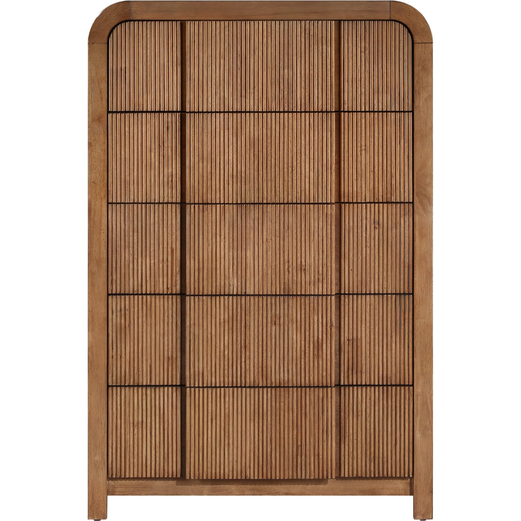 The Fluted Chest is a great way to enhance the decor of your room and elevate its style. The fluted drawer fronts highlights intricate detailing, while the arched shape of the chest provides an eye-catching design feature. The rich natural finish gives depth and character to the overall appeal.This piece not only serves a functional purpose for storage but also adds a touch of elegance to any living space.