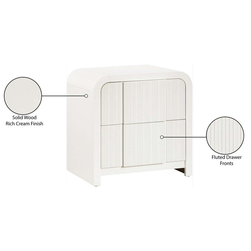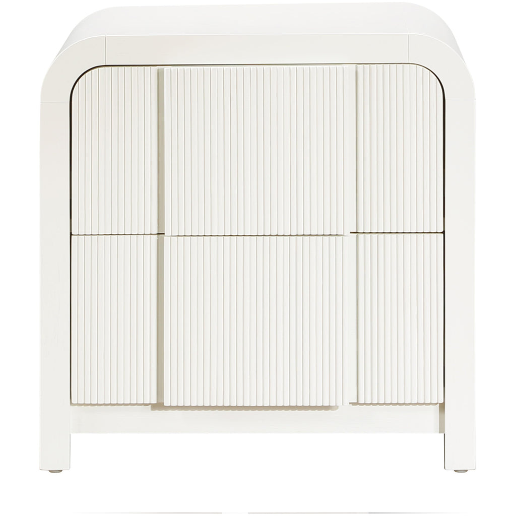 The Fluted Night Stand is a great way to enhance the decor of your room and elevate its style. The fluted drawer fronts highlights intricate detailing, while the arched shape of the dresser provides an eye-catching design feature. The rich cream finish gives depth and character to the overall appeal. This piece not only serves a functional purpose for storage but also adds a touch of elegance to any living space.
