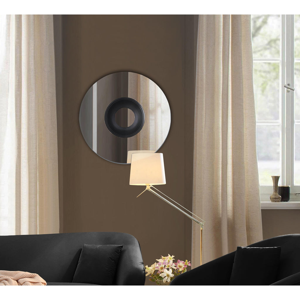 Go for out-of-this-world style when you hang this silver Galaxy mirror in your home. This eye-grabbing mirror features a discus design with a definitive geometric slant to bring oodles of contemporary charm to your wall. Its modern matte black finish melds nicely with lots of different contemporary decor items you already own, making this piece a must for your room. This oversized mirror measures 3 foot by 3 foot, so it garners maximum visual oomph on your wall.