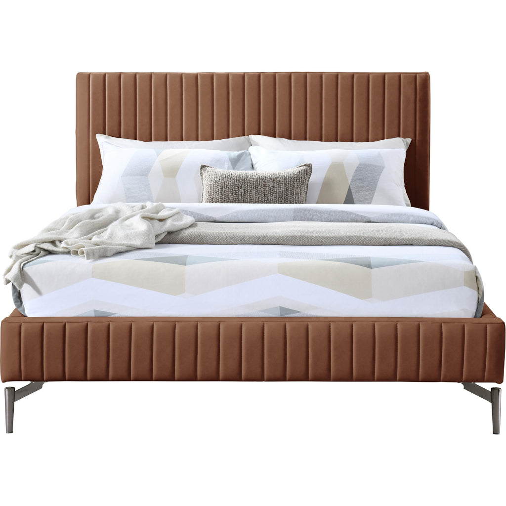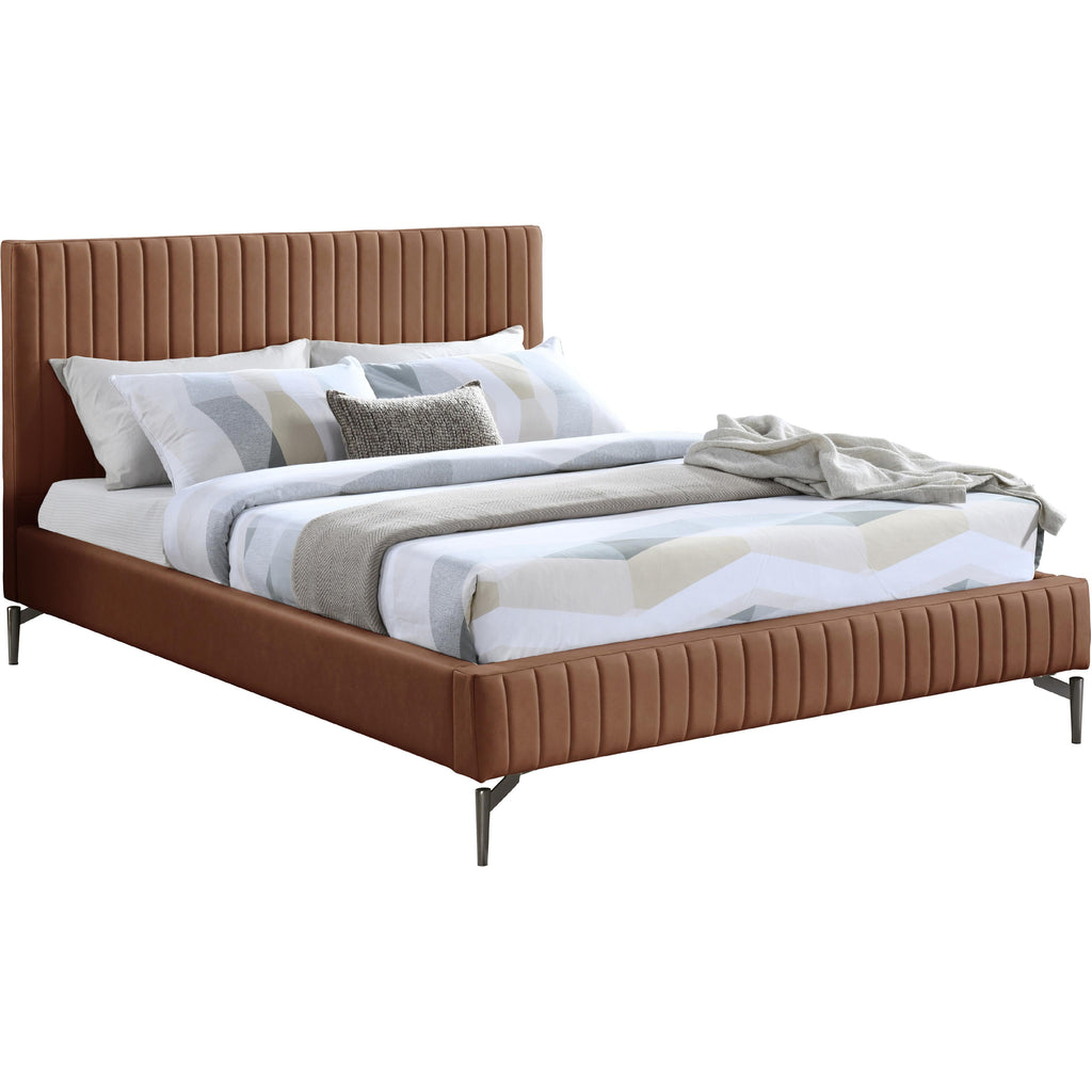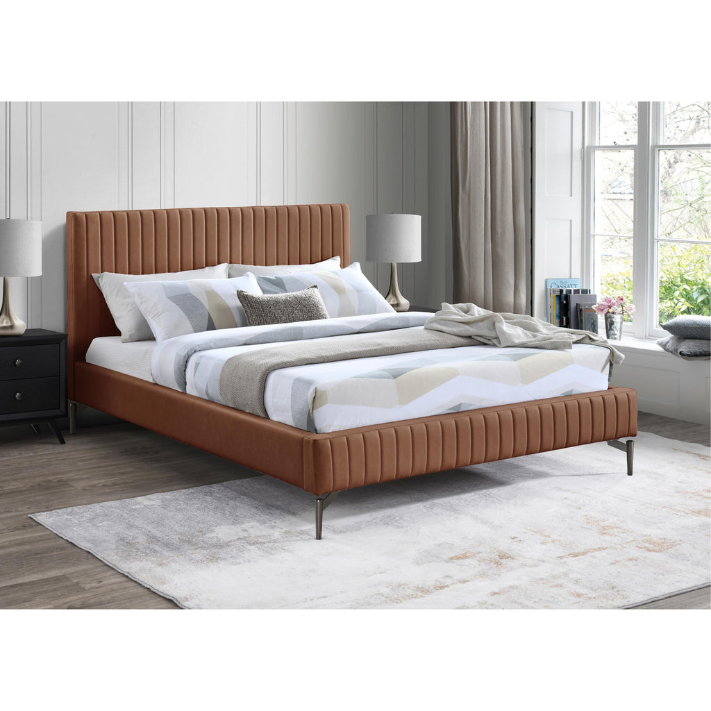 Indulge in the comfort and luxury of the Gallo Vegan Leather Queen Bed, and transform your bedroom into a haven of relaxation. This exquisite piece boasts a luscious premium soft cognac vegan leather exterior that exudes elegance and sophistication. Its water-resistant and anti-scratch properties ensure durability and long-lasting beauty. The deep channel tufting adds depth and texture to the overall design, while the sleek black metal legs elevate its character and charm to new heights.