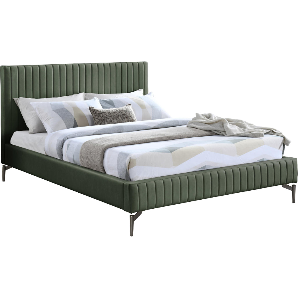 Indulge in the comfort and luxury of the Gallo Vegan Leather Queen Bed, and transform your bedroom into a haven of relaxation. This exquisite piece boasts a luscious premium soft green vegan leather exterior that exudes elegance and sophistication. Its water-resistant and anti-scratch properties ensure durability and long-lasting beauty. The deep channel tufting adds depth and texture to the overall design, while the sleek black metal legs elevate its character and charm to new heights.