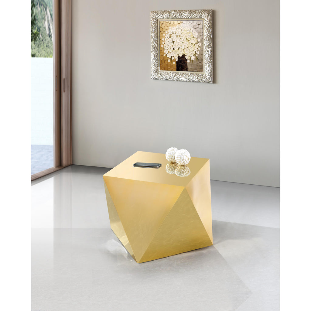 Make a bold statement for the entire world to see - or at least your home visitors - when you incorporate this Gemma Gold End Table from Meridian Furniture into your home decor. This diamond shaped table is made from rich gold stainless steel, giving its contemporary design a gorgeous shine that's hard to miss. Use this table as an accent piece or as a centerpiece in your living space, and draw the attention of all who set eyes on it.