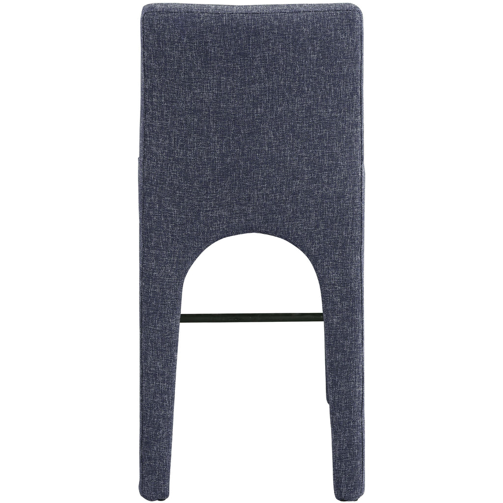 Give your kitchen counter or home bar a makeover with these blue Gramercy linen textured fabric bar/counter stools. Rich blue linen textured fabric upholstery feels comfortable to the touch, helping ensure that these stools quickly become everyone's favorite seat. The arched iron inner frame complements the pair's art deco look, while the low-back design ensures an inviting seating experience. With a convenient footrail for resting your feet, these stools offer both style and practicality.