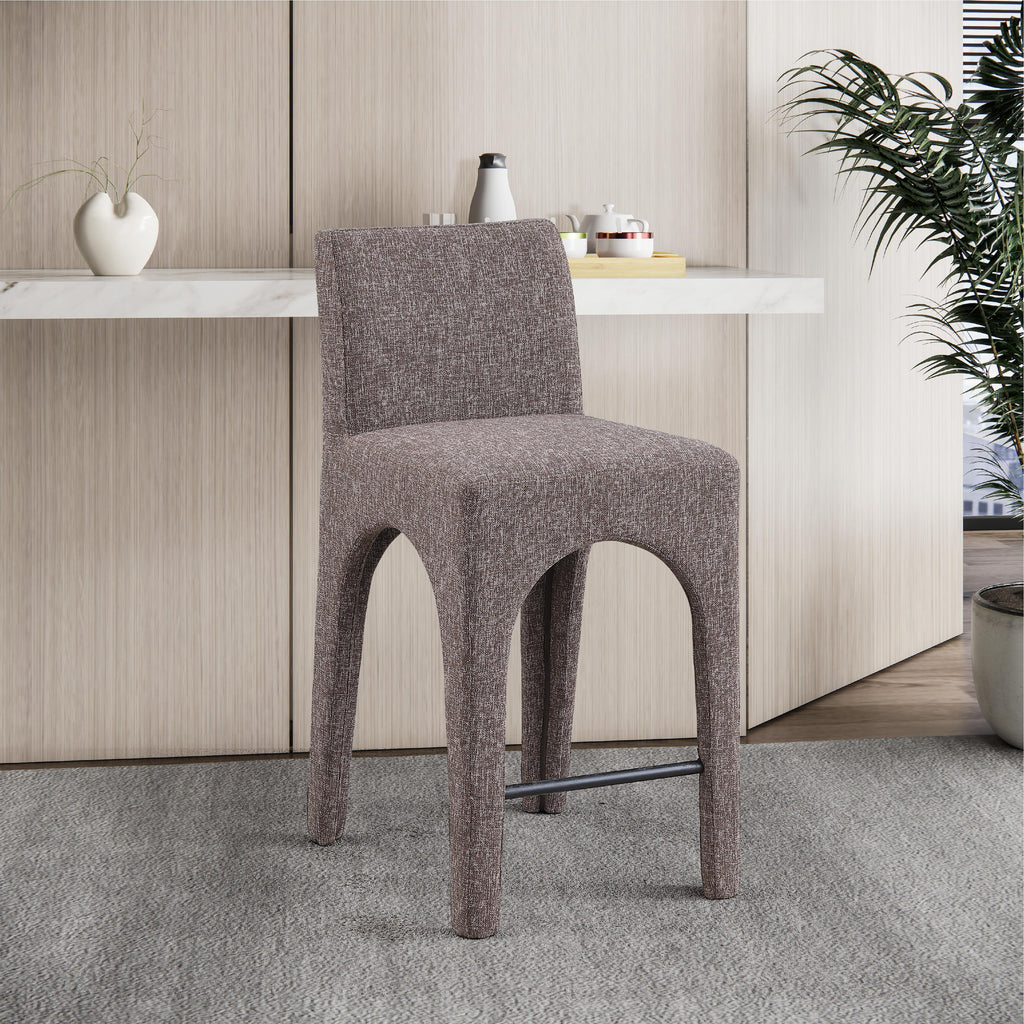 Give your kitchen counter or home bar a makeover with these brown Gramercy linen textured fabric bar/counter stools. Rich brown linen textured fabric upholstery feels comfortable to the touch, helping ensure that these stools quickly become everyone's favorite seat. The arched iron inner frame complements the pair's art deco look, while the low-back design ensures an inviting seating experience. With a convenient footrail for resting your feet, these stools offer both style and practicality.