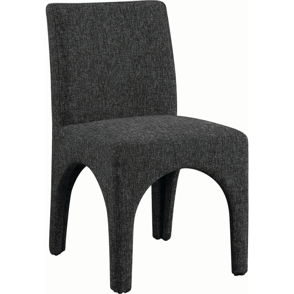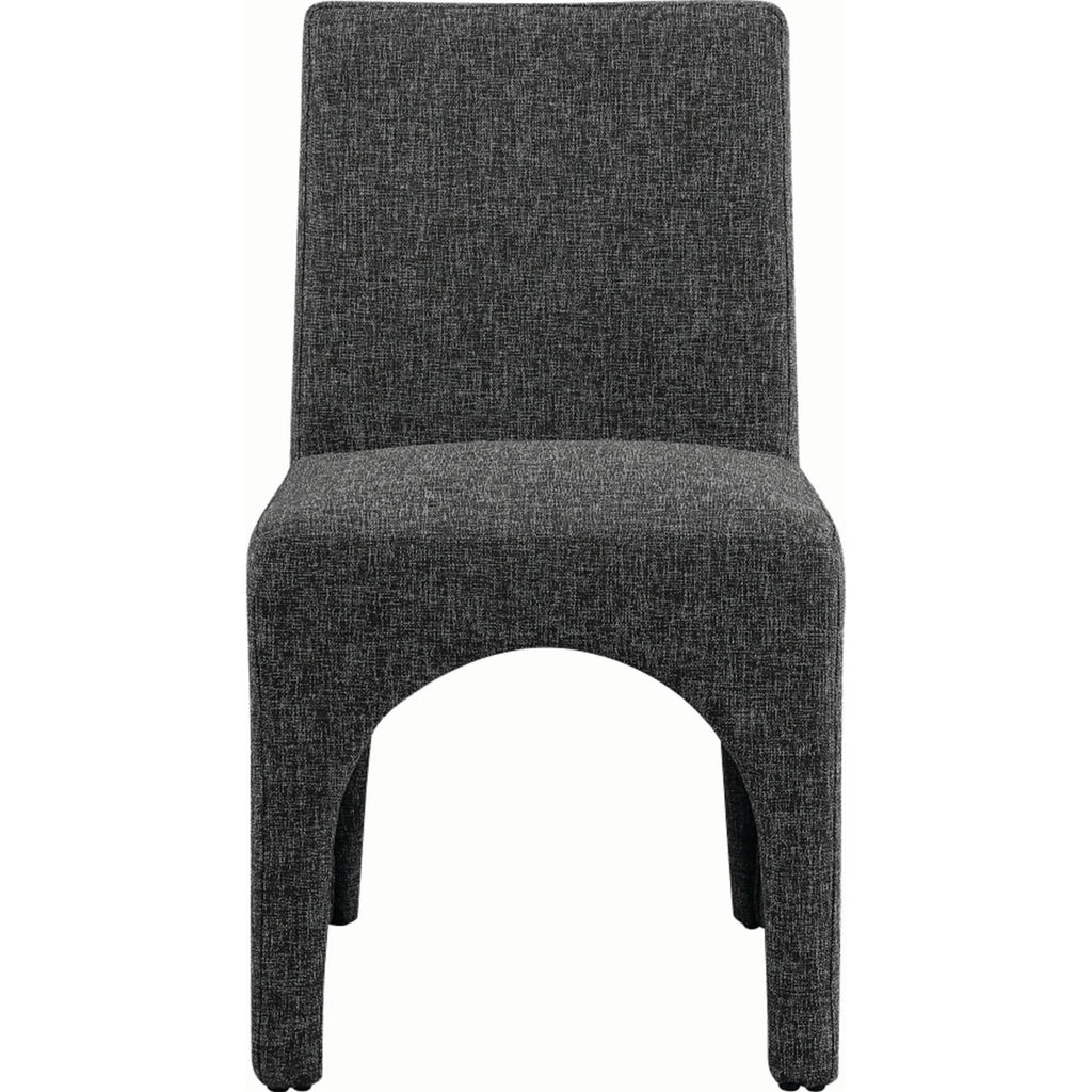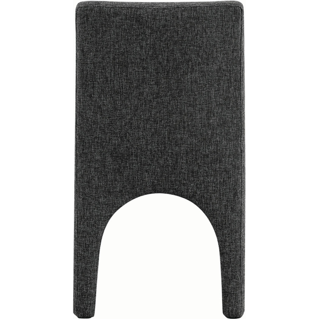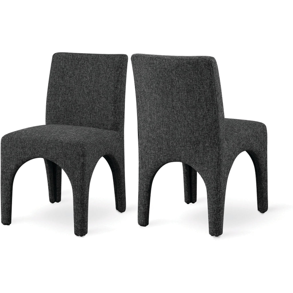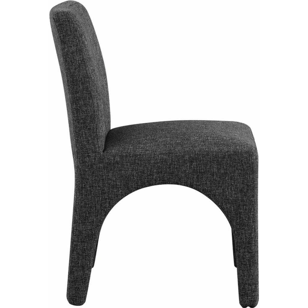 Transform your dining area into an elegant space with the Benson linen-textured fabric dining chairs, which come in a set of two. These chairs are upholstered with a plush black fabric that has a subtle white weave, giving your dining room a refined and sophisticated look. The chairs feature a sturdy iron arched inner frame that ensures long-lasting durability and stability. With their art deco design, they add a touch of glamour to your dining space. Whether you're having a casual meal with family or a formal occasion with guests, these beautiful chairs are perfect for enhancing the ambiance of your dining area with style and comfort.